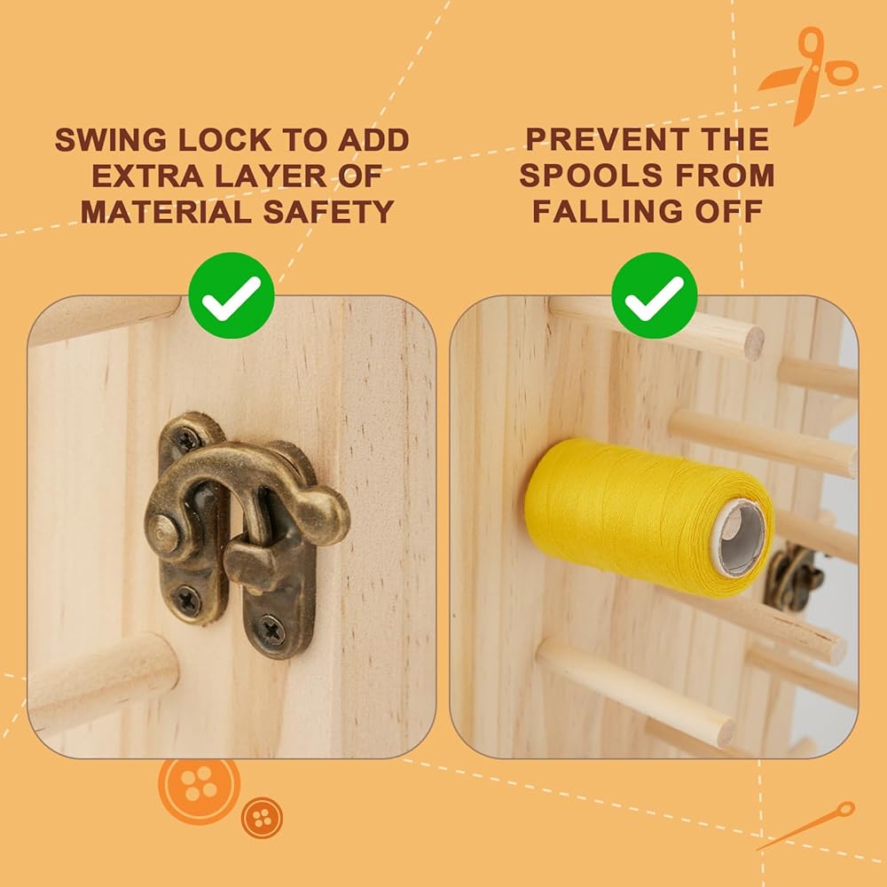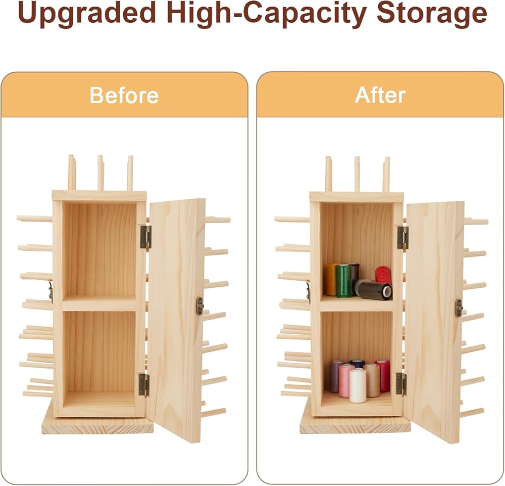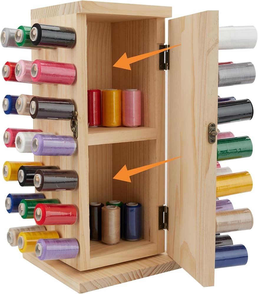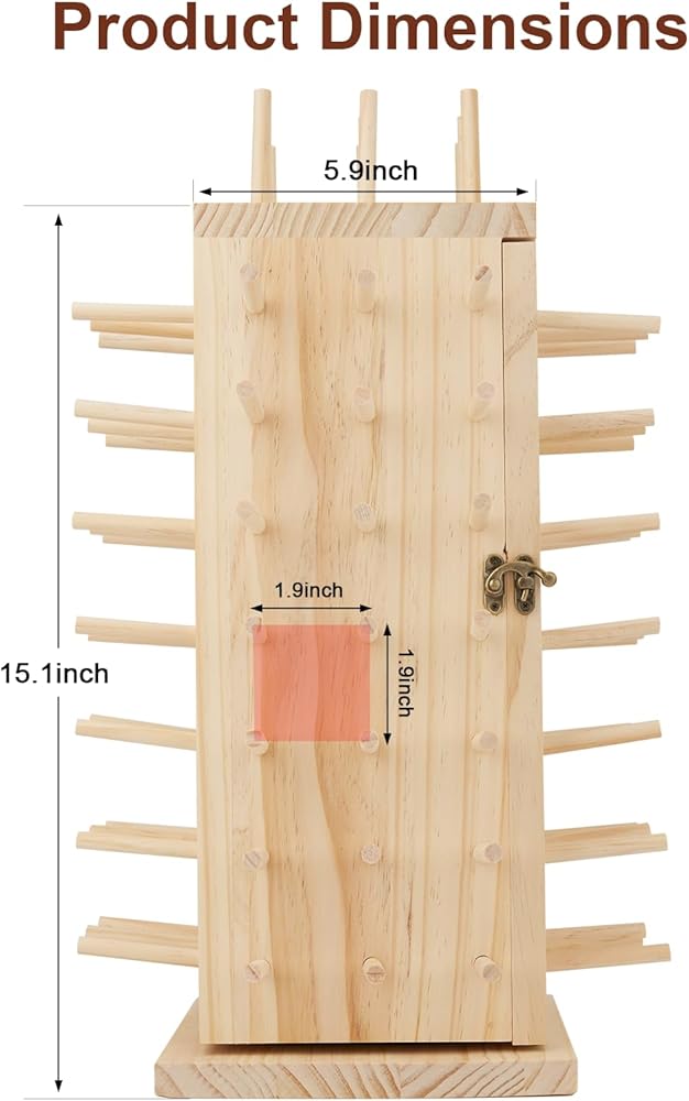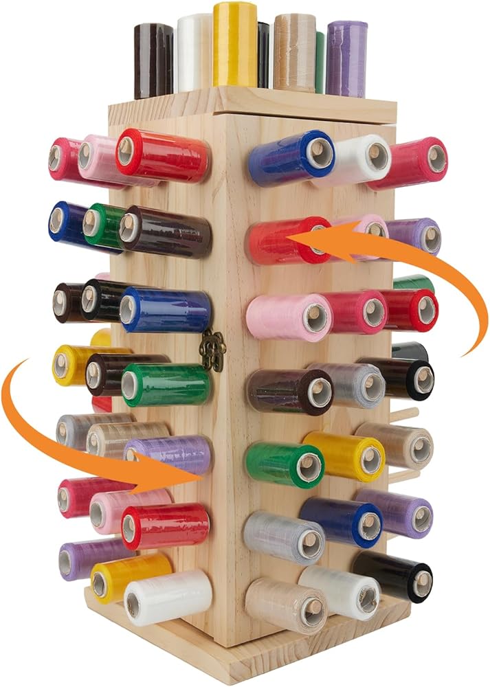 [Premium natural wood and painted allowed(the rack itself is not painted before ship to you)] Our rotating thread rack is made of premium natural beech wood with smooth finishing, it can be DIY painted or stained to match your embroidery and sewing machines, or your sewing room and sewing desk.