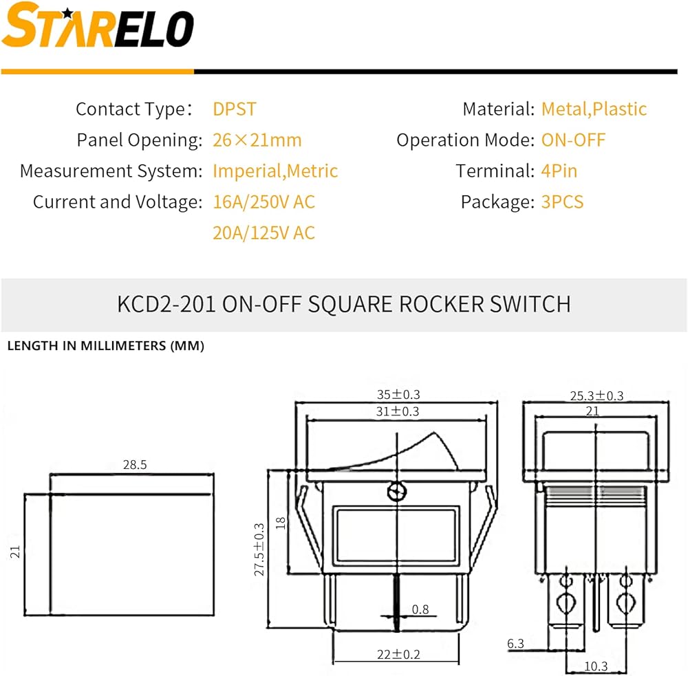 الوظيفة: يحتوي هذا المفتاح المتأرجح المزود بمصباح LED أحمر على جهد إدخال يبلغ 125 فولت - 250 فولت تيار متردد. عند تشغيل المفتاح، سيضيء ضوء LED للإشارة إلى أن الوحدة تعمل.