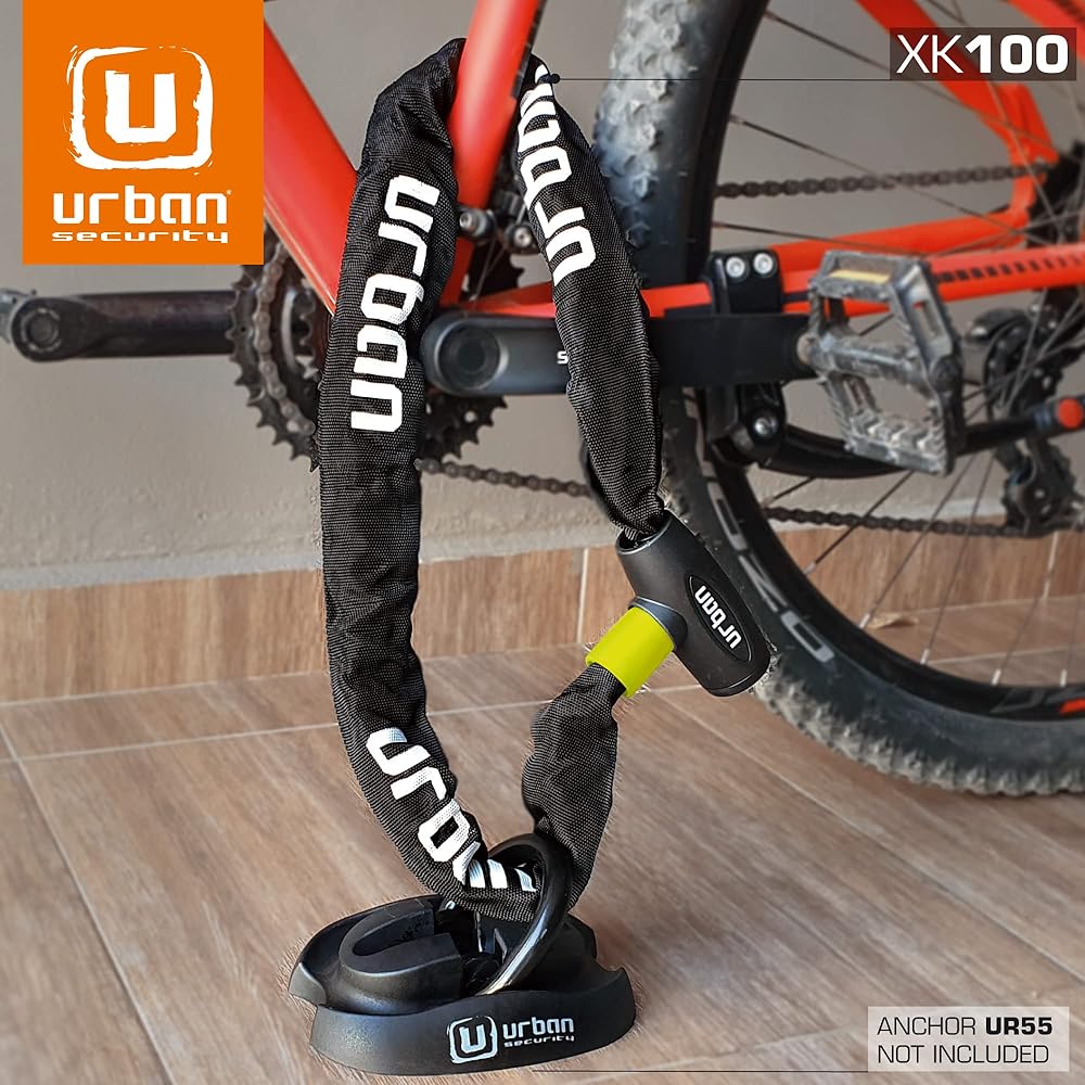 قفل سلسلة الدراجة Urban XK100، شديد التحمل مضاد للسرقة 100 سم ø8 مم سلسلة فولاذية صلبة قفل عالي الأمان، أكثر إحكاما وأسهل للحمل، متعدد الاستخدامات مضاد للسرقة للدراجات أو الدراجات النارية أو السكوتر الكهربائي