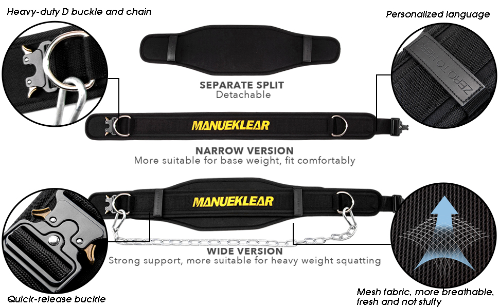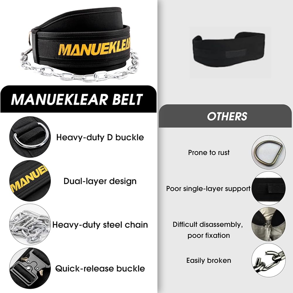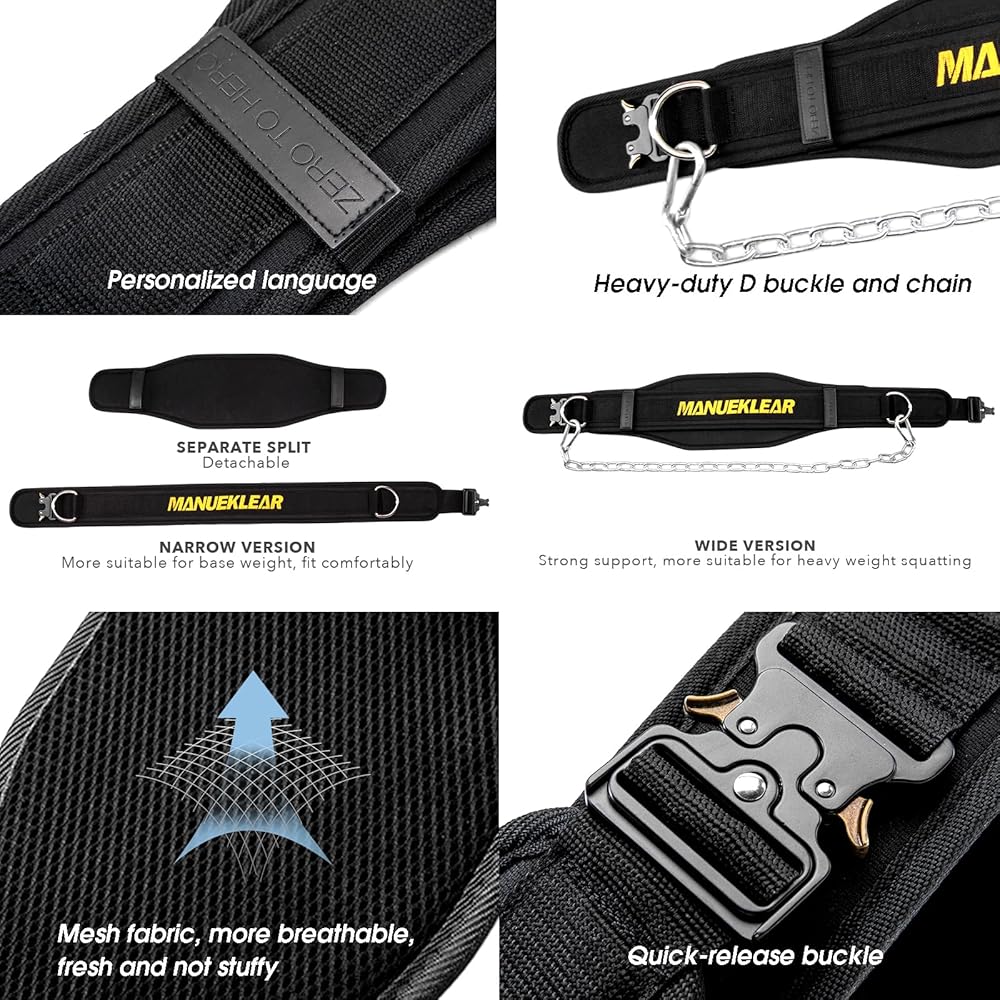 Optimized for Peak Performance - Supercharge your fitness regimen with MANUEKLEAR's innovative 2-in-1 weighted belt. Tailored for both pros and fitness enthusiasts, our dip belt with chains and weightless belt provide 360-degree dual-layer support and adaptability, transforming any workout session. Sculpt your ideal physique with confidence and ease!