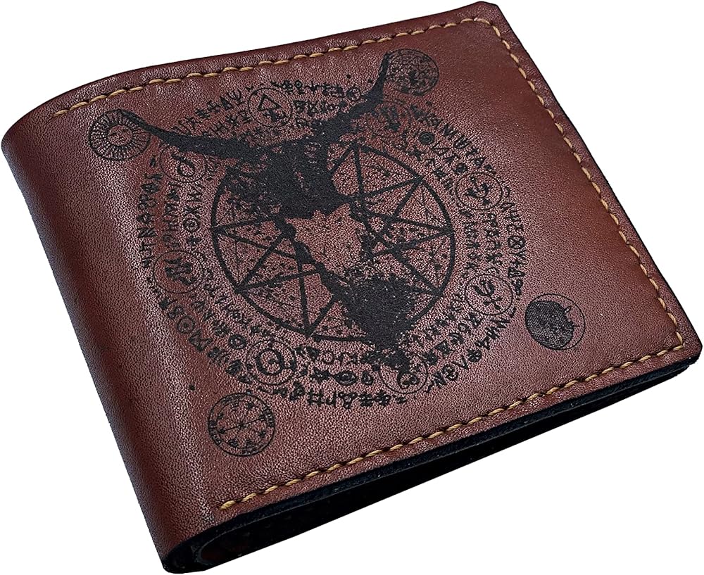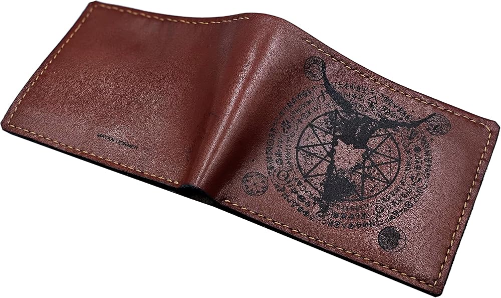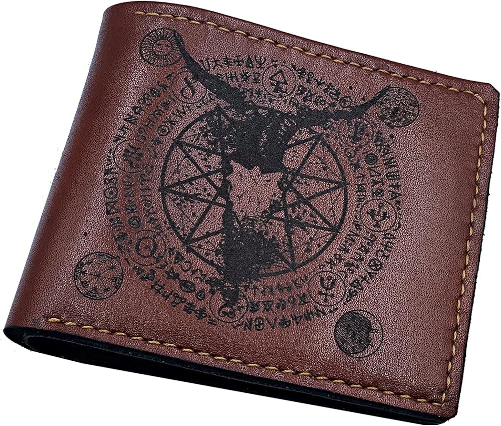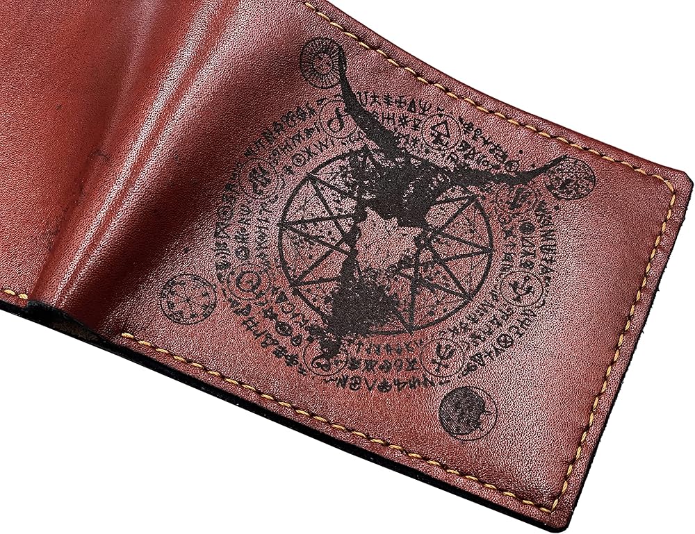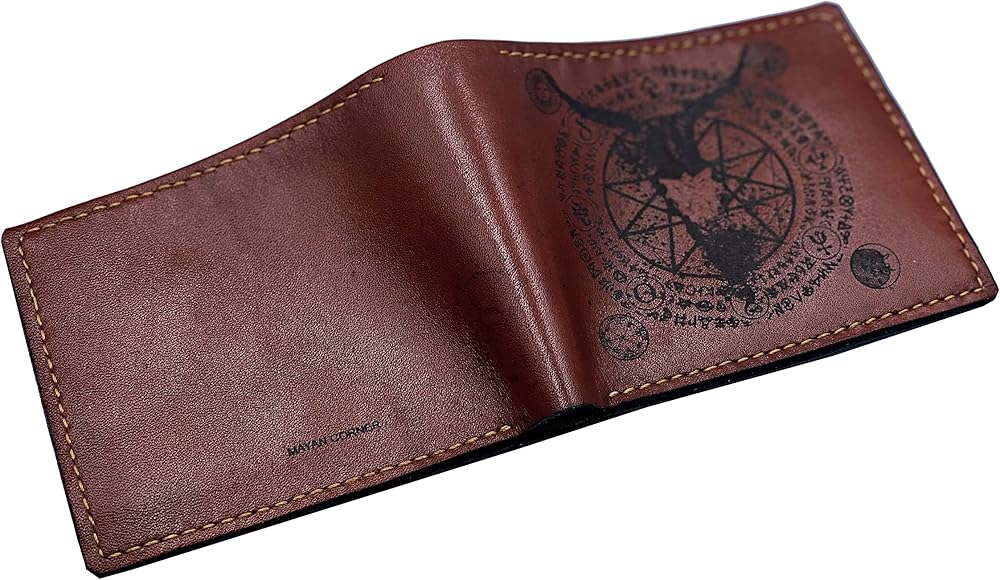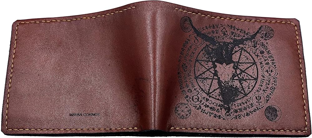 Mayan Corner - محفظة رجالية مصنوعة يدويًا من الجلد الطبيعي، محفظة ثنائية الطي، نمط رموز الشيطان الخماسي القديم - 3CH