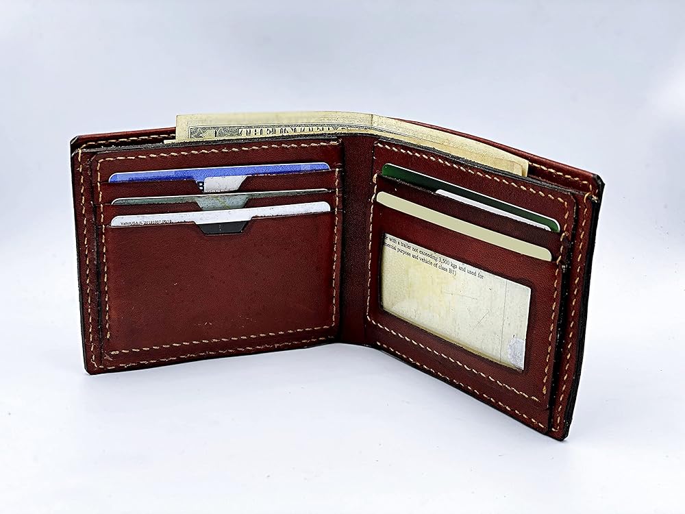 • هيكل بسيط: تحتوي المحفظة الجلدية الرجالية المصنوعة يدويًا على 06 فتحة للبطاقات، و02 حافظة كبيرة للنقود، و02 طيات متوسطة للفواتير/الملاحظات. إنها محفظة بسيطة، نحيفة ورفيعة، تناسب الجيب الأمامي ولكنها توفر مساحة كافية لاستخدامك اليومي.