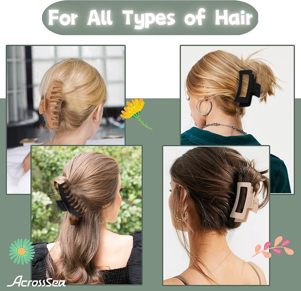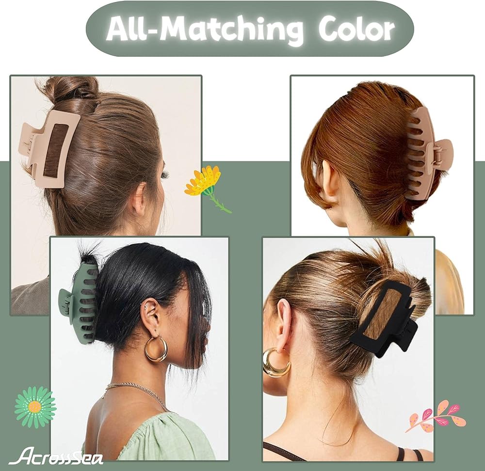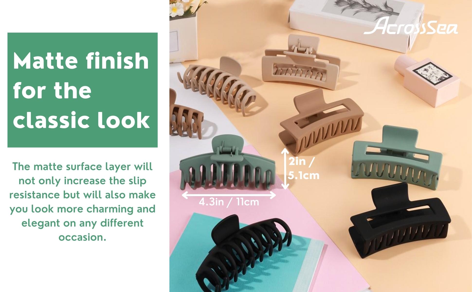 💖【ألوان جميلة】: مشابك الشعر الكبيرة متوفرة بأربعة ألوان. مع لون ناعم غير لامع، فهو عملي وجميل ويمكن مطابقته مع أزياء مختلفة وتسريحات شعر المواعدة واحتياجات الخروج المختلفة.