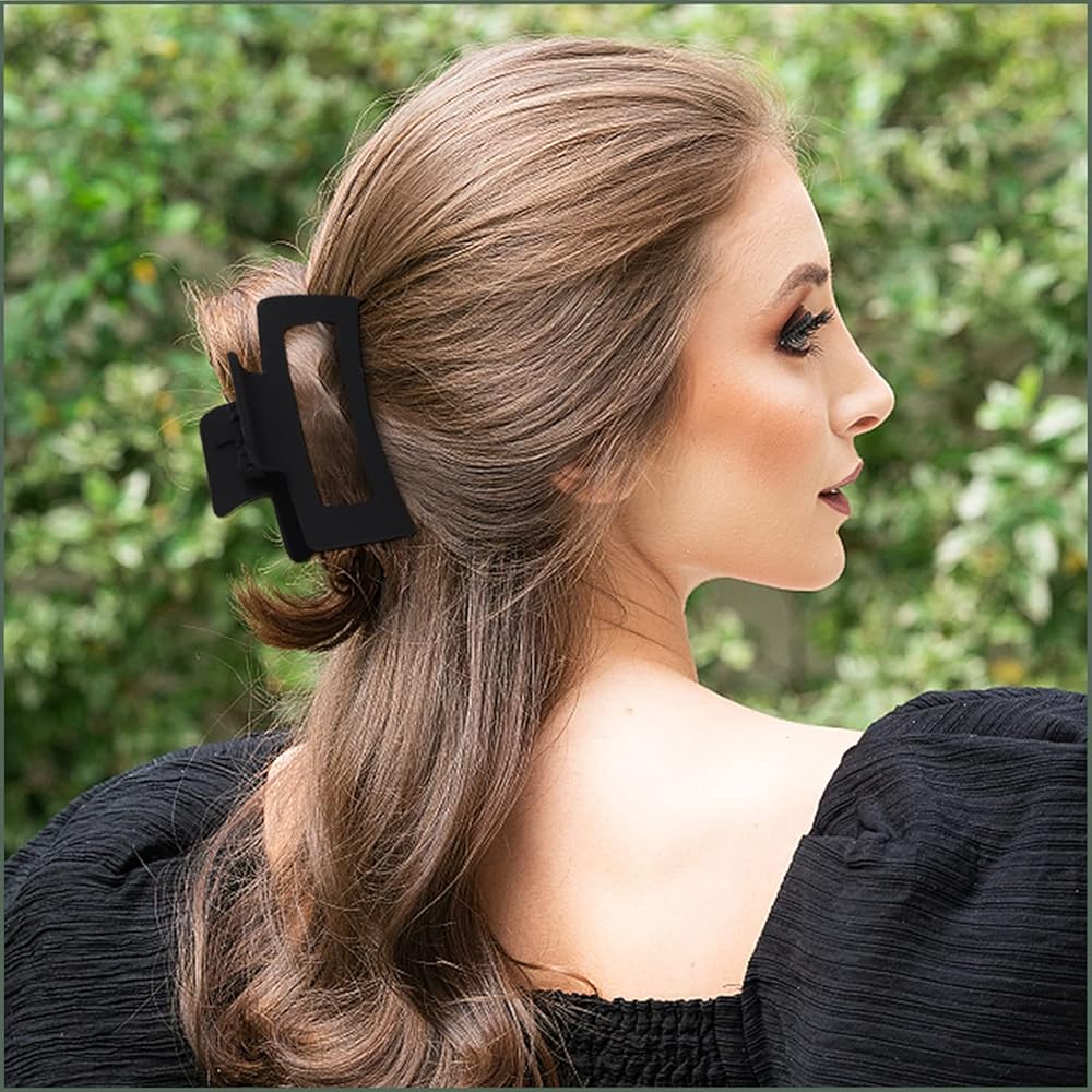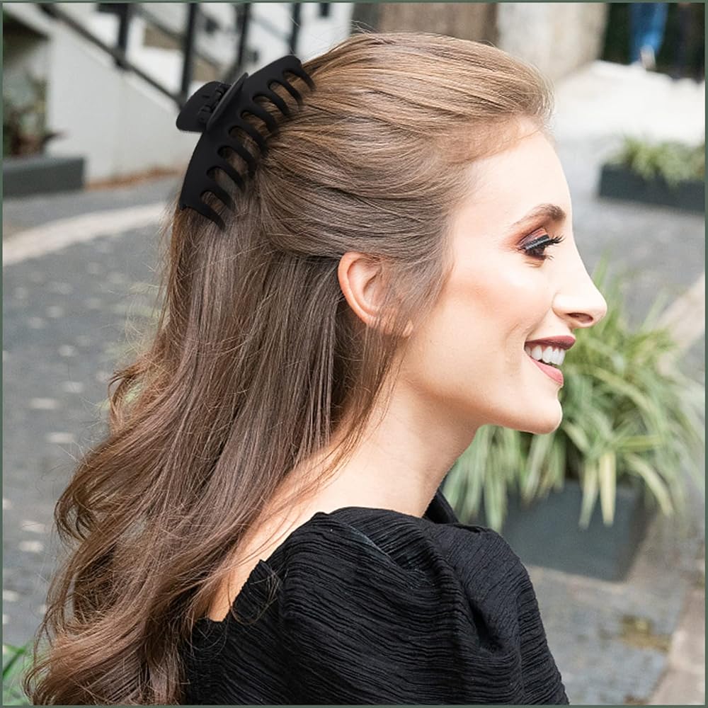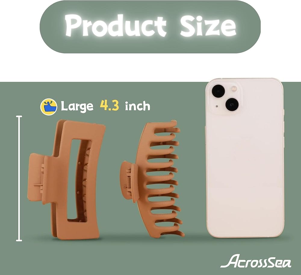 💖【مقاس واحد يناسب الجميع】: مشابك الشعر الكبيرة مقاس 11.43 سم طويلة وقوية بما يكفي لأي نوع من أنواع الشعر، مثل الرقيق أو السميك أو المجعد أو المستقيم أو المموج أو الطويل. تم تصميم مخالب دبوس الشعر الكبيرة لتثبيت الشعر بداخله. مكانها وخفيفة الوزن للارتداء طوال اليوم دون التسبب في الصداع.