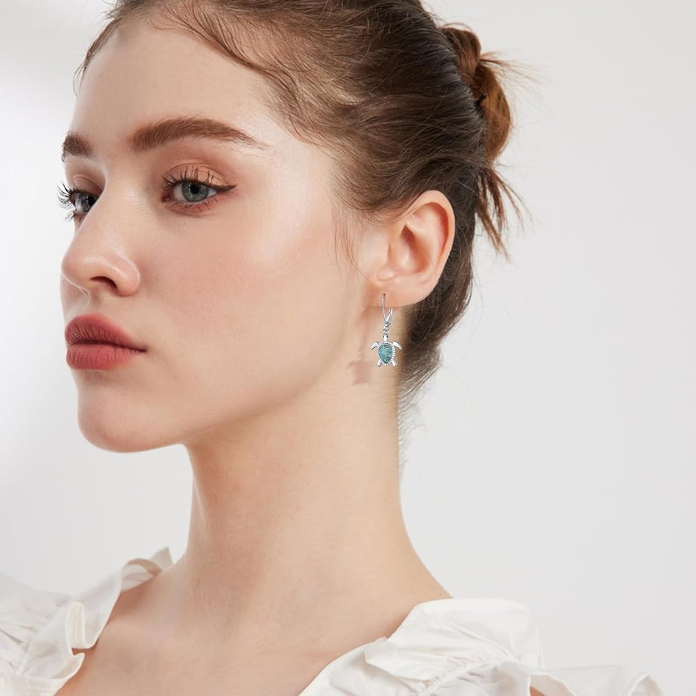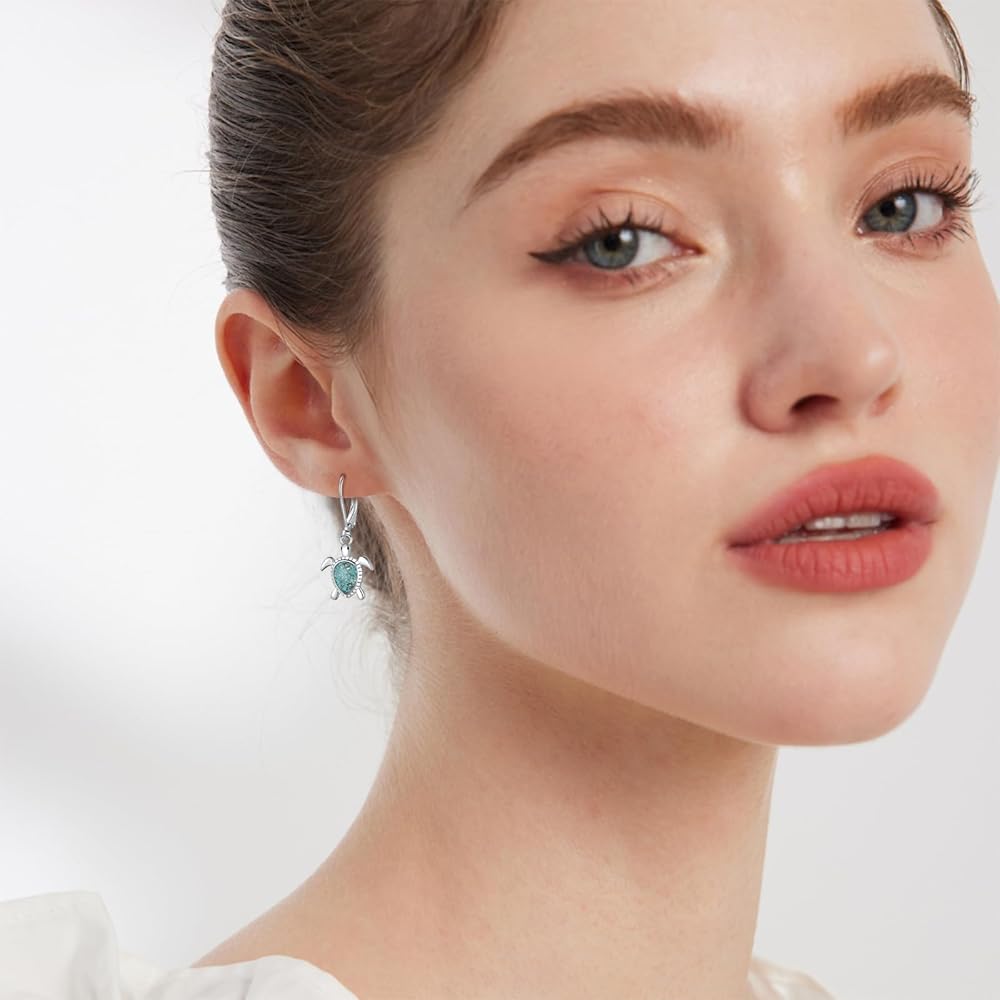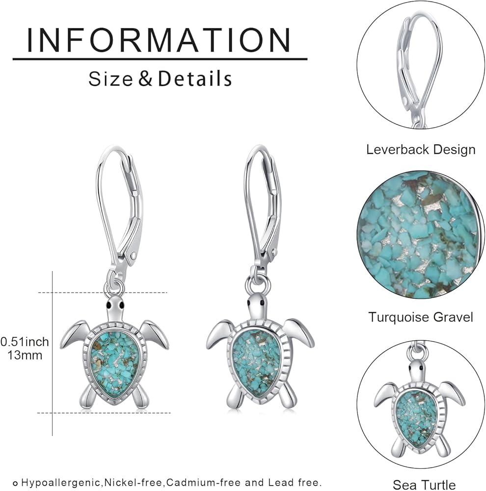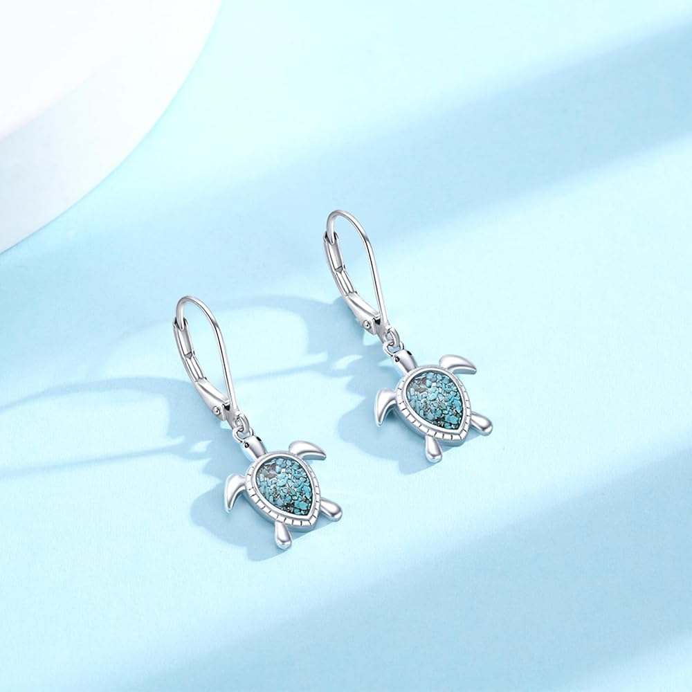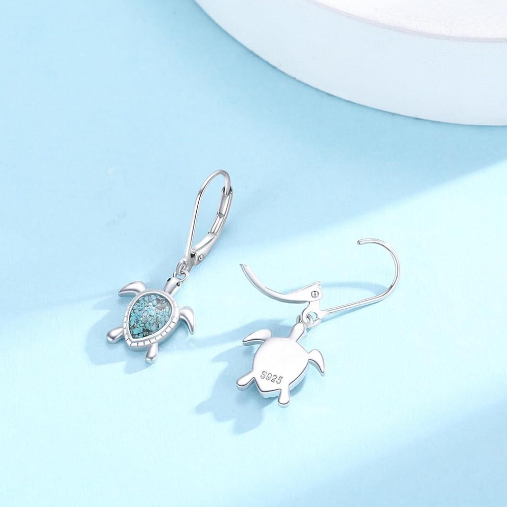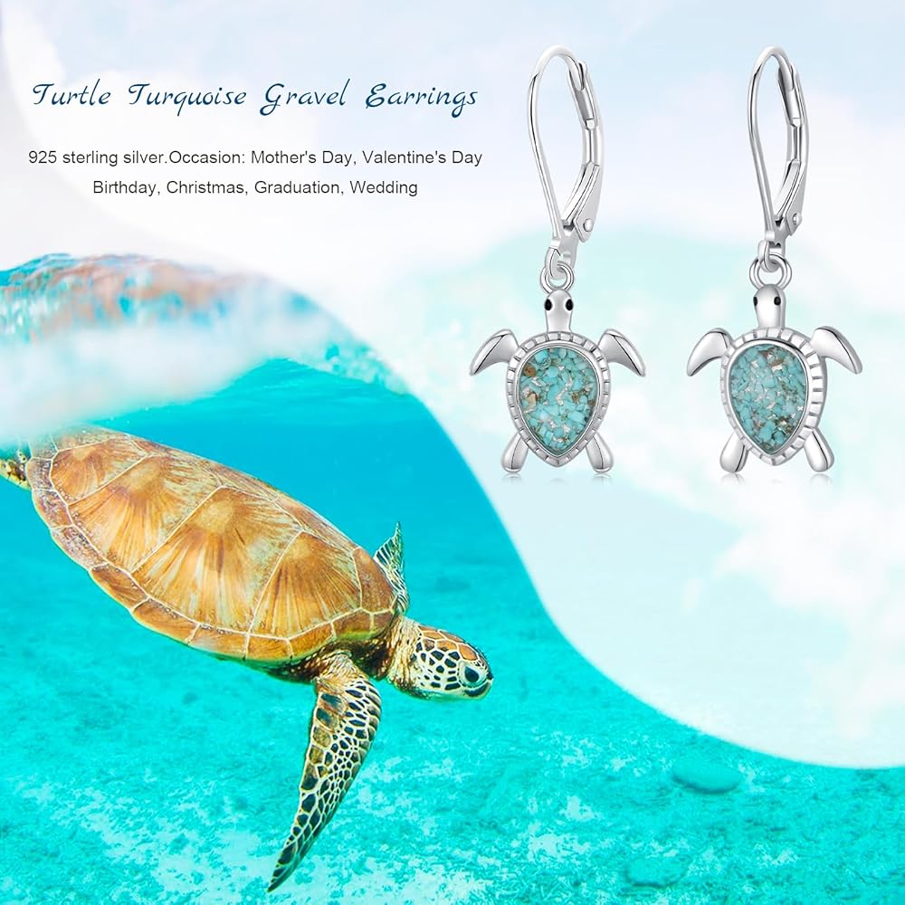 【أقراط فيروزية】أقراط السلحفاة مصنوعة من الفضة الإسترلينية عيار 925 عالية الجودة، تقنية تلميع رائعة تجعل كل التفاصيل ناعمة ومشرقة. لا يسبب الحساسية، مريح في الارتداء، آمن على البشرة.
