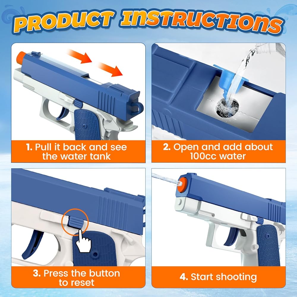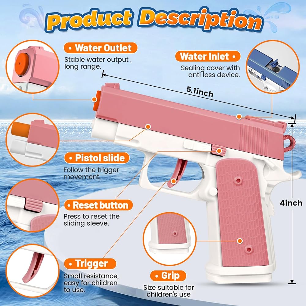 【مادة آمنة】: مسدسات المياه المسدس مصنوعة من مادة أكريلونتريل بوتادين ستايرين عالية الجودة، وتصميم الحافة المستديرة يحمي أيدي طفلك. ليس مع طاقة البطارية ويمكنك اصطحابها إلى حمام السباحة أو إلى المحيط. لا تقلق بشأن التسرب الكهربائي والصدمات