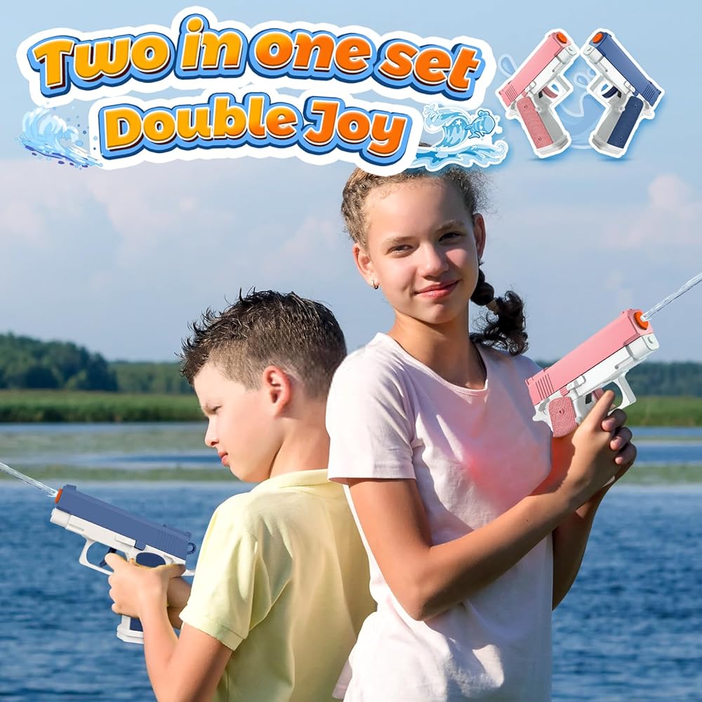 【مجموعة من مسدسين مائيين】: عبوتان من مسدسات رش صغيرة تناسب الأولاد والبنات من سن 3 4 5 6 7 8 9 10 11 12 سنة فما فوق والكبار. تصميمه المدمج والمحمول يسمح للاعب بحمله بسهولة. شاركوا سعادة الصيف معًا