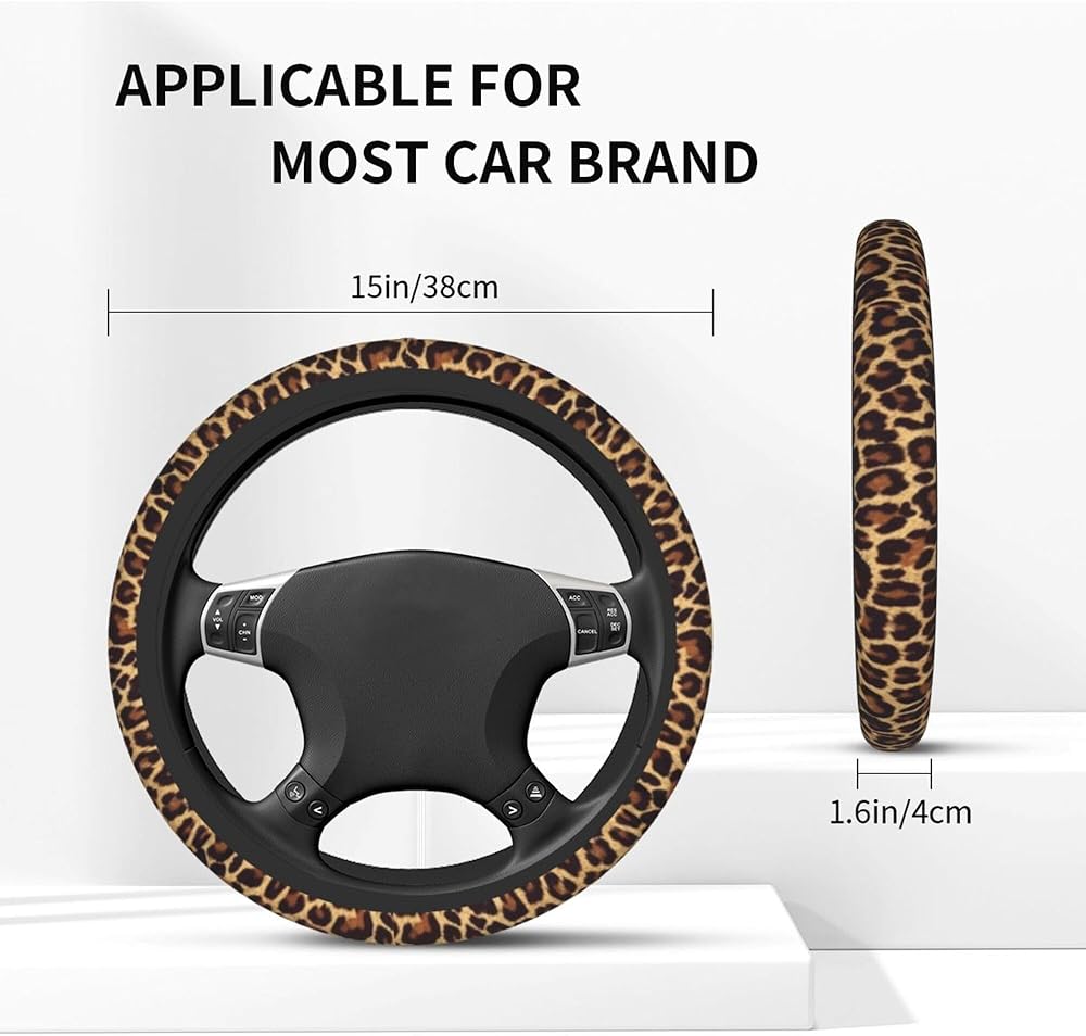 SIZE : Leopard Steering Wheel Cover Size 15x1.6 Inches, Used For Steering Wheels With A Diameter Of 14~15 Inches. Fits For Most Vehicles, Suvs, Vans, Trucks.Add Some Personality To Your Car Or Truck,Every Auto Needs A Cool Accessory.