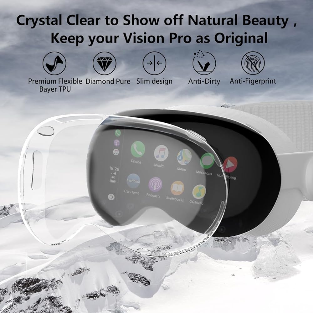 Compatiblity:The VR accessoires case cover only fit for Apple Vision Pro latest released in 2024.The front protective case cover compatible with Apple Vision Pro VR offers a seamless fit that enhances the overall user experience (Not Included The Vision Pro Device).Package Includes: 1× Clear Case Cover.
