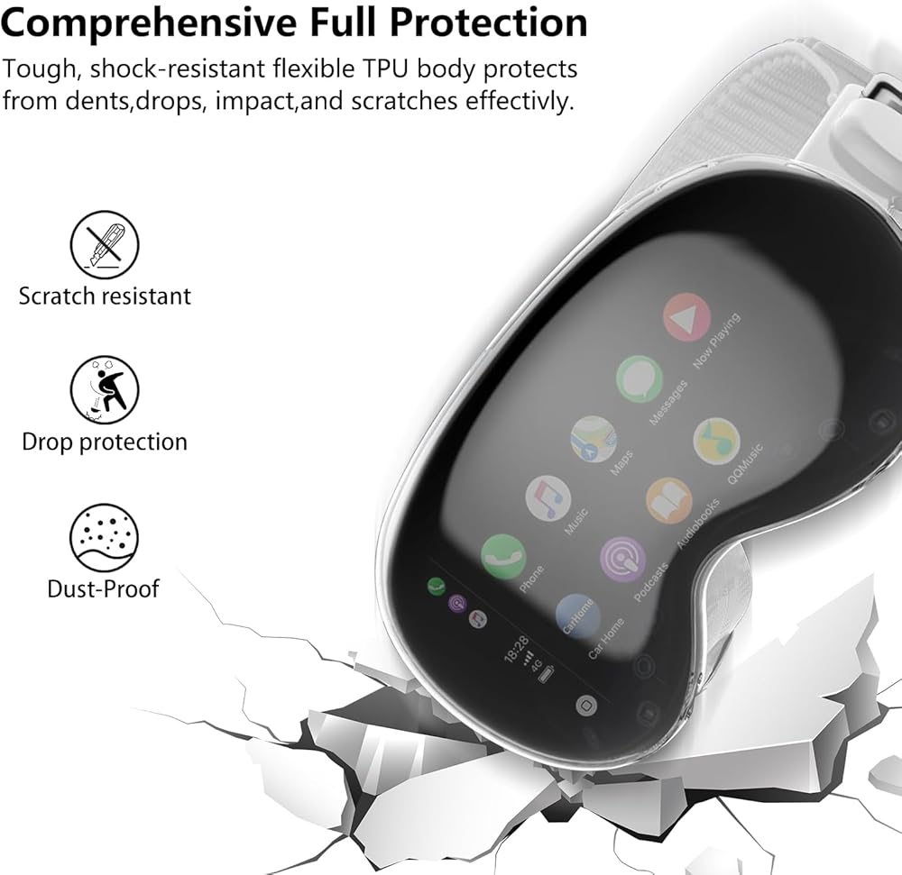 Anti-Scratch&Drop Prevention-The VR headset protective shell for Apple Vision Pro case is designed with shock-absorsent flexible Bayer TPU to highly protect your Vison Pro from bumps, drops, scratches, fingerprint smudges and dust without adding additional bulk;