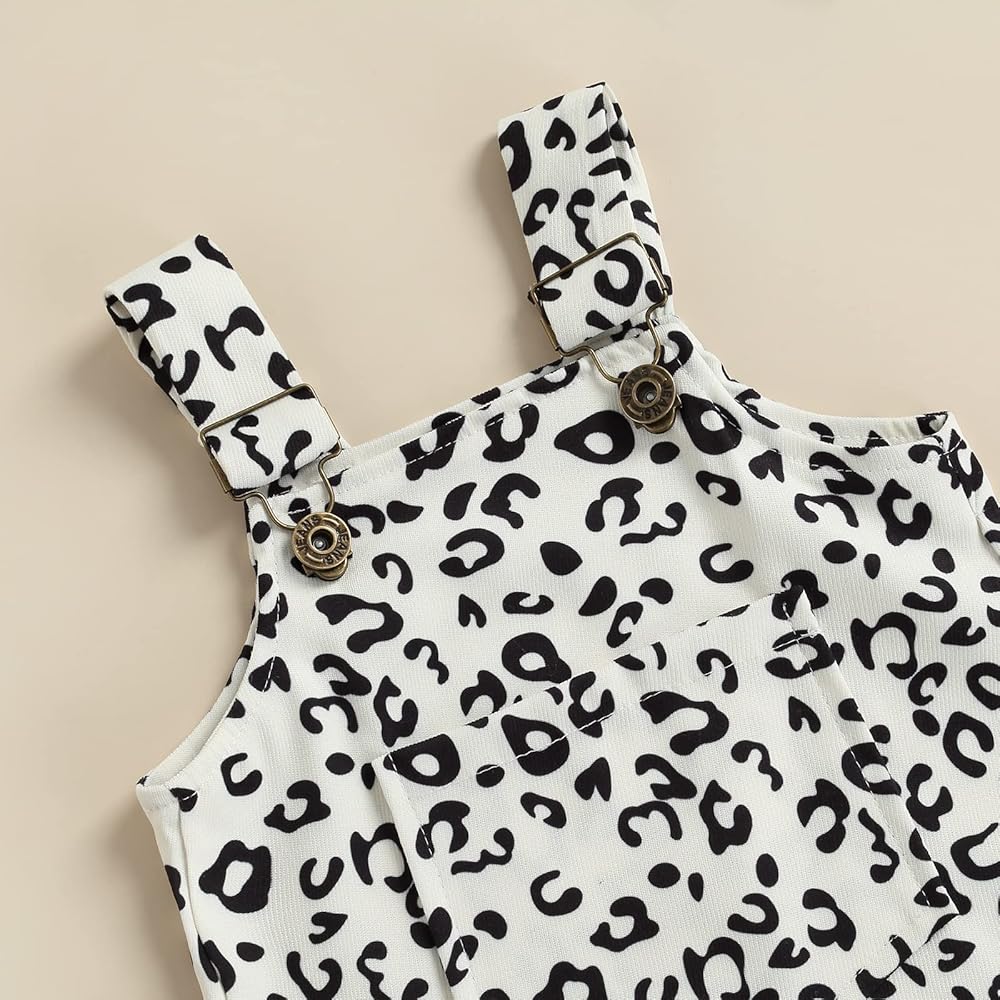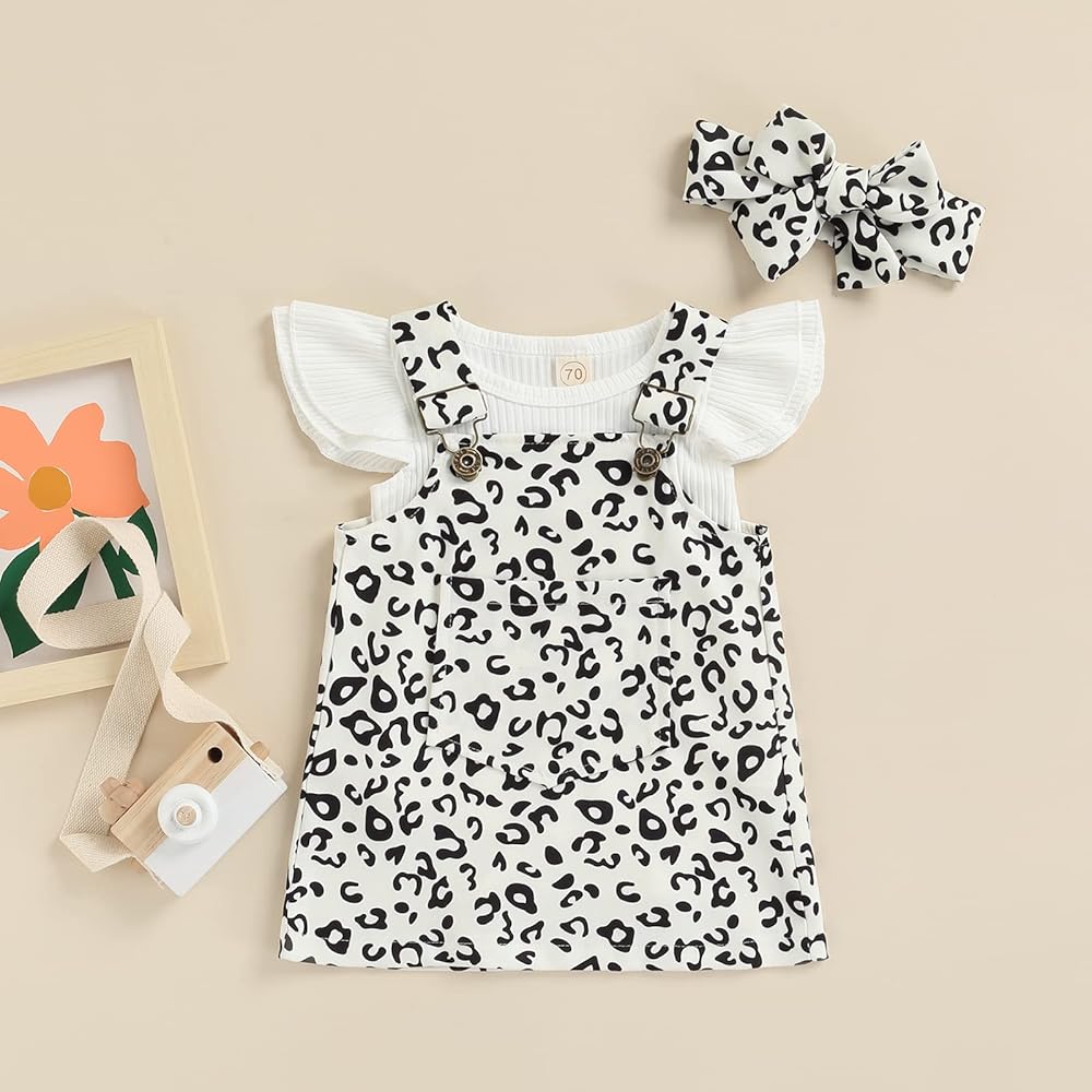 • Design : Infant baby girls overall dress set with unique design ,Considerate triangle snap button crotch design, fits baby's body shape, convenient to change the diaper, make your baby feel comfortable.ruffle short sleeve knit ribbed romper top match with overall dress leopard printed,pocket button decorations strap skirt ,chic and fashion ,simple and cozy,make your baby girls more adorable and charm