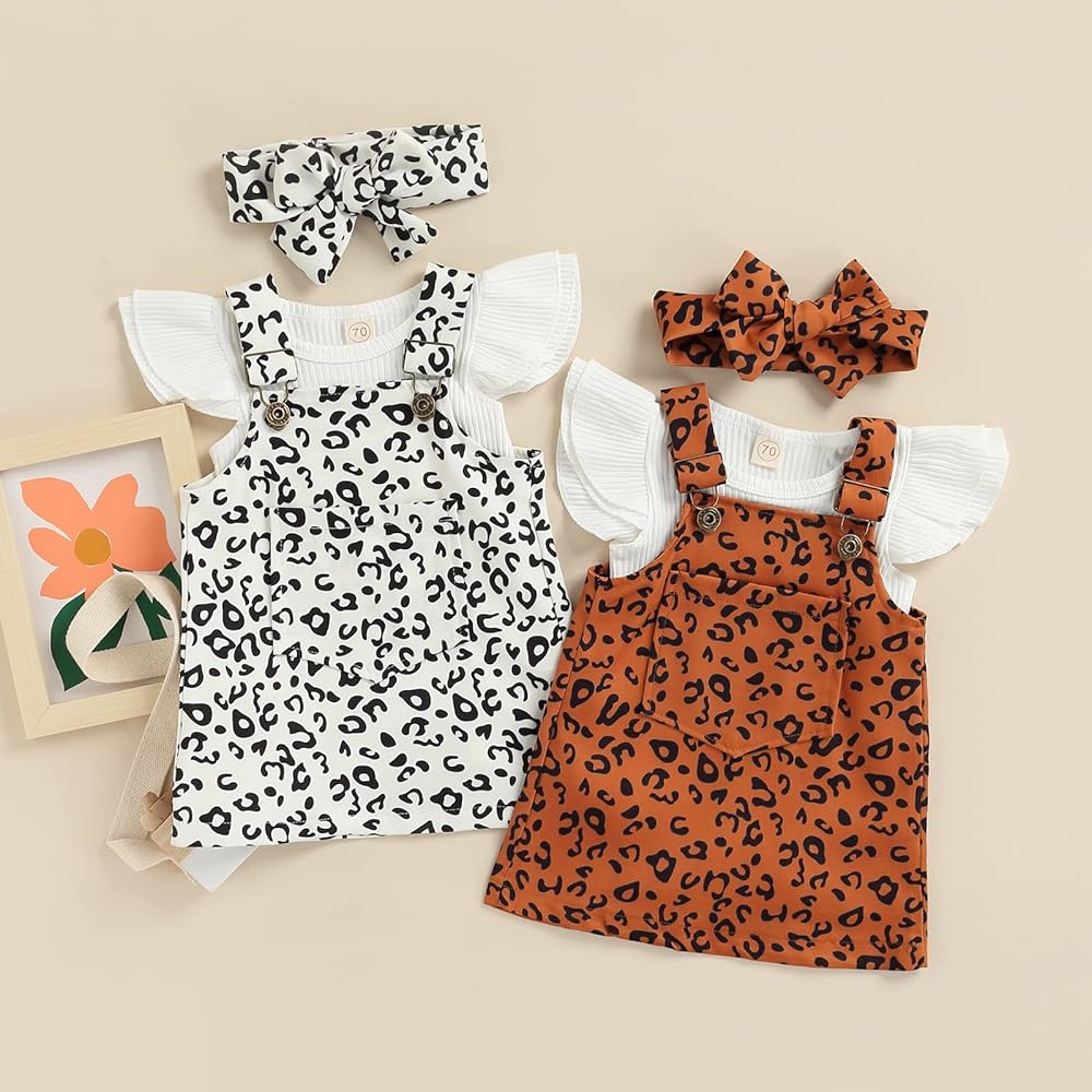 • Package contents: 1*Romper jumpsuit tops+1*Overall Leoparddress+1*Cute headband.Wash by hand and machine,dry naturally.your baby will love this baby girls skirt set ,all these details perfect for summer outfits,chic and fashion ,make your baby more attractive and get more compliment from others.