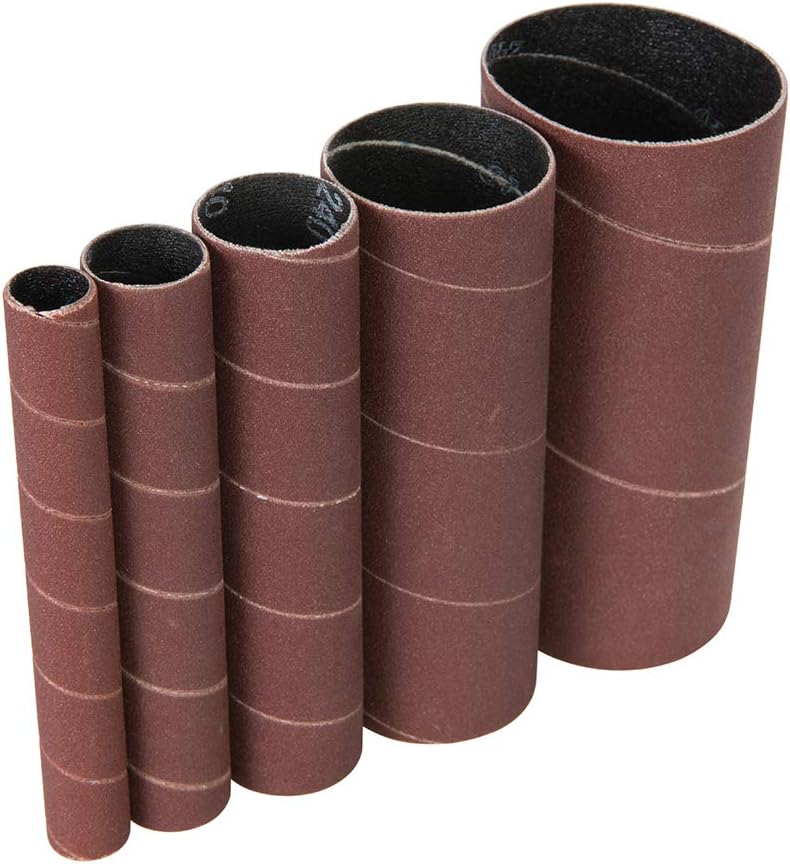 Aluminium oxide with cloth backing for use with the Triton Oscillating Spindle Sander TSPST450. For use on wood, plastic, ferrous and non-ferrous metals, and most non-metallic materials. Includes sizes 13, 19, 26, 38 and 51mm (1/2", 3/4", 1", 1-1/2" and 2"). Length 115mm (4-1/2").