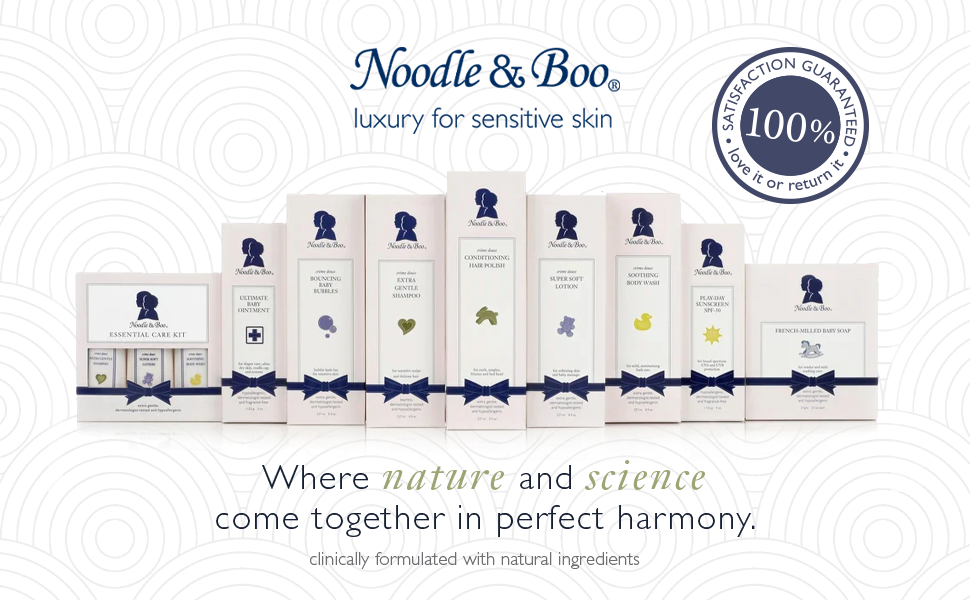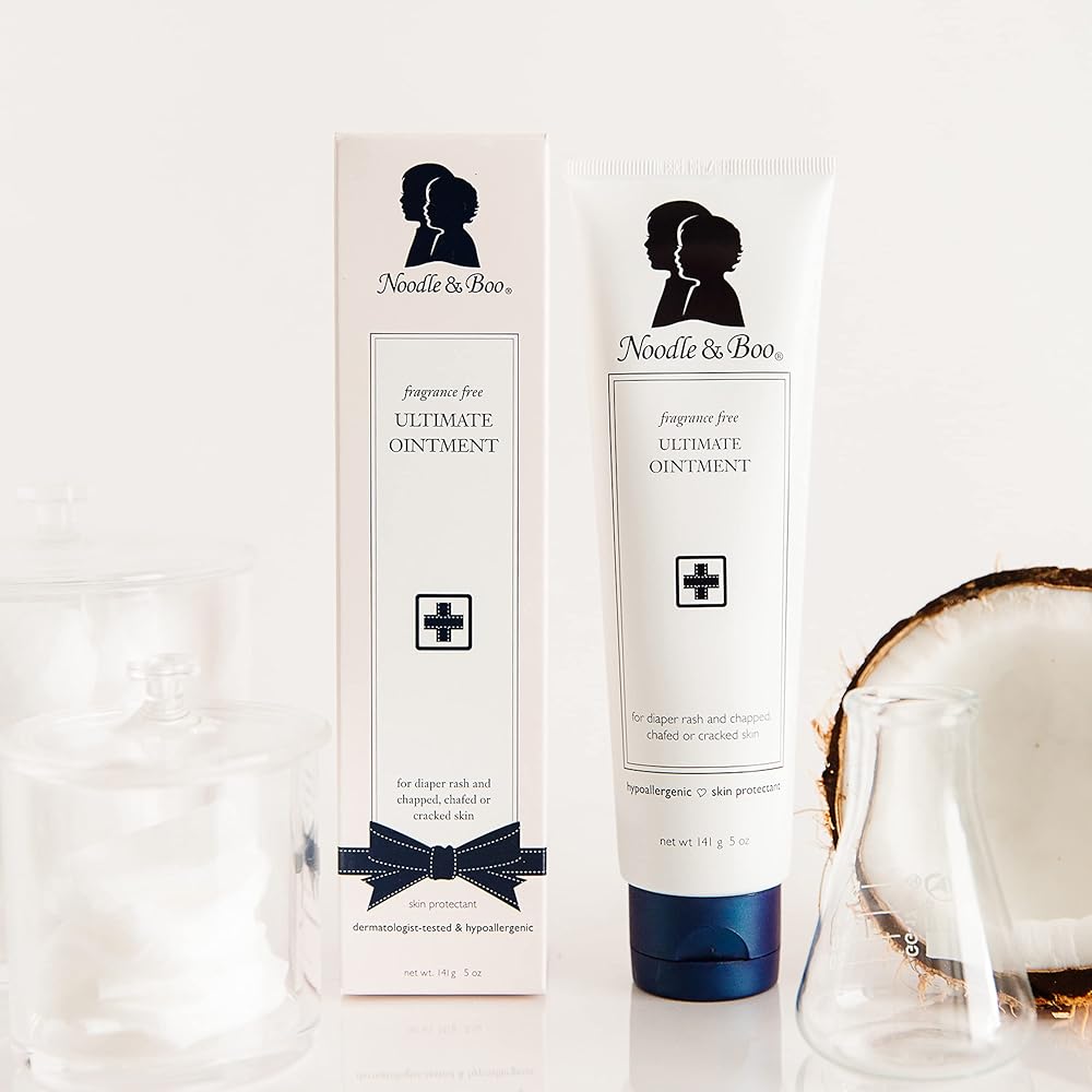 مجموعة هدايا Noodle & Boo Newborn Daily Essentials مكونة من 4 قطع | غسول للشعر والجسم 2 في 1 لحديثي الولادة (8 أونصة)، لوشن فائق النعومة للأطفال (8 أونصة)، مرهم نهائي لطفح الحفاضات (5 أونصة) ومناديل مبللة للتنظيف النهائي للأطفال (72)