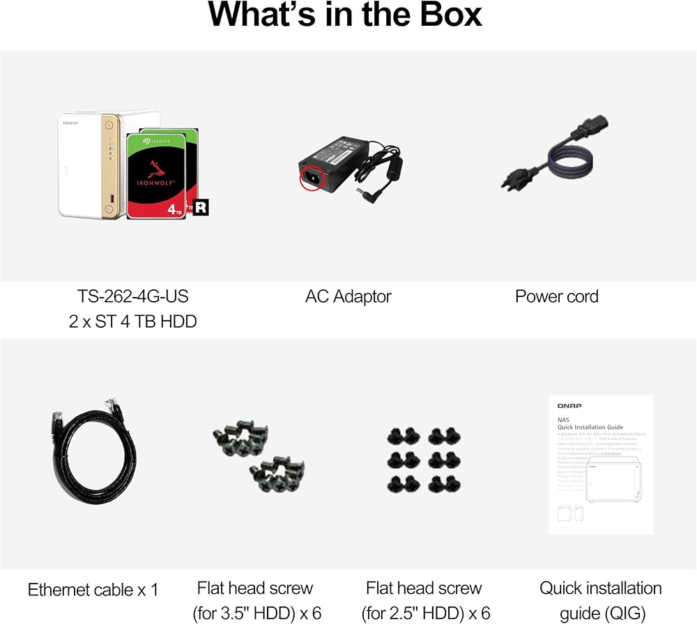 2 x 4TB Seagate IronWolf drives pre-installed and pre-configured with RAID 1. Hassle-free