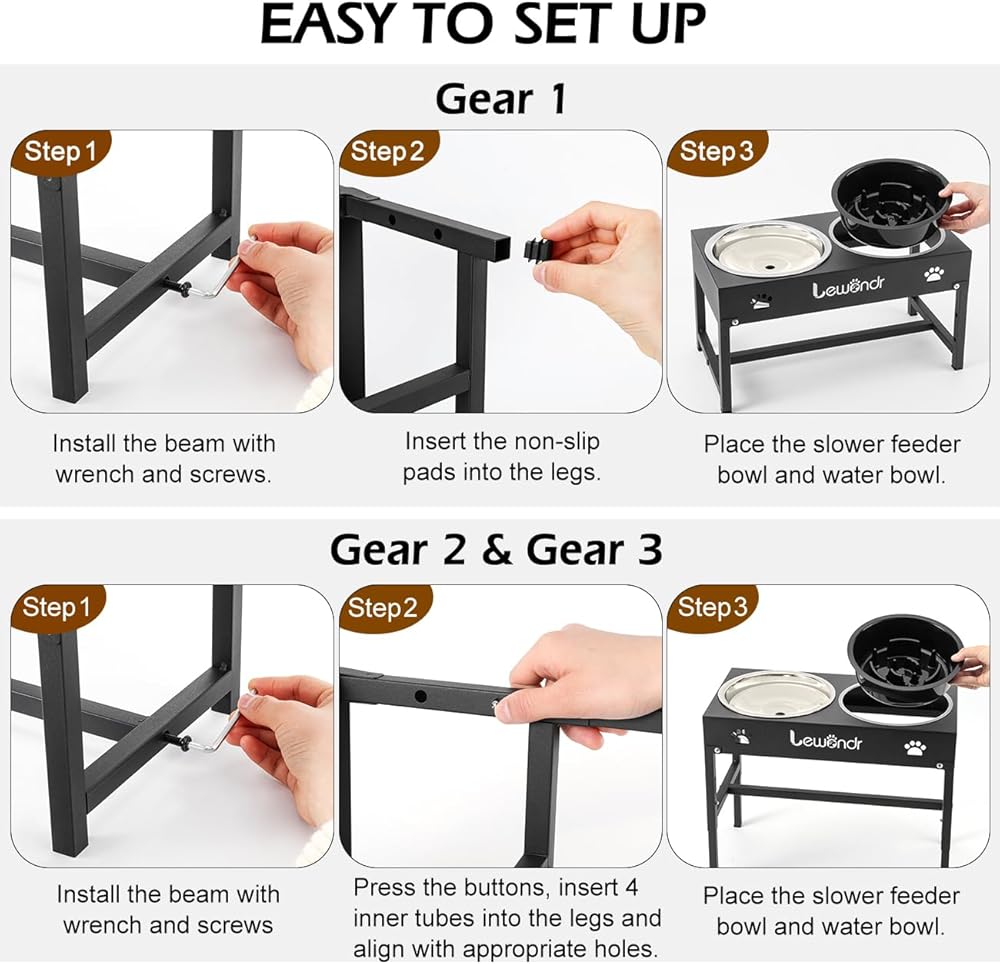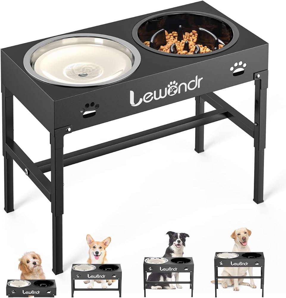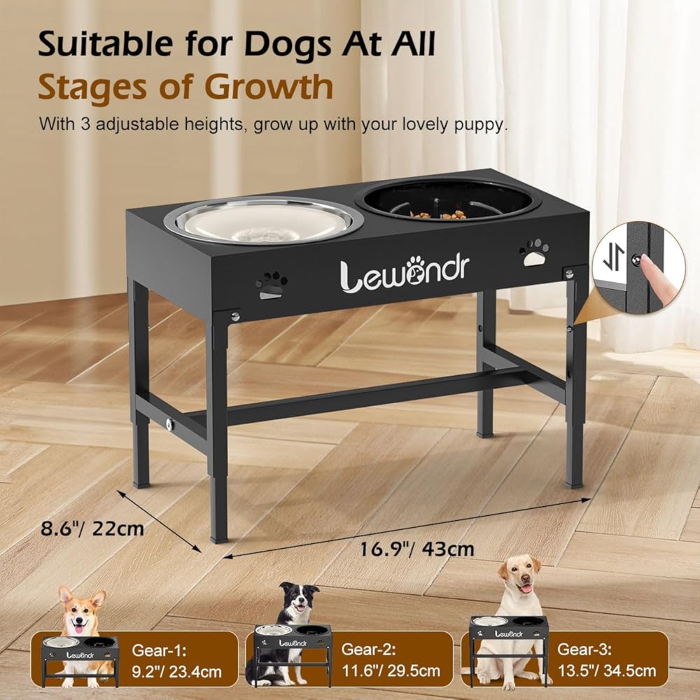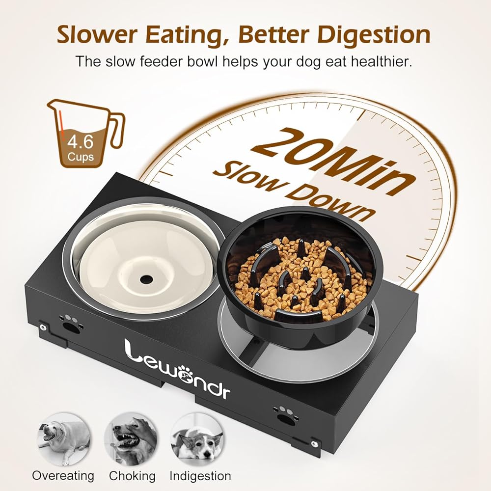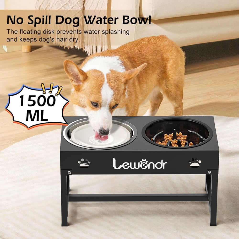 أوعية الكلاب المرتفعة من lewondr، أوعية معدنية مرتفعة 2 في 1 لتغذية الكلاب البطيئة مع عدم وجود وعاء ماء منسكب، 3 ارتفاعات قابلة للتعديل لوعاء الكلاب المرتفعة ومحطة تغذية للكلاب الصغيرة والمتوسطة والكبيرة