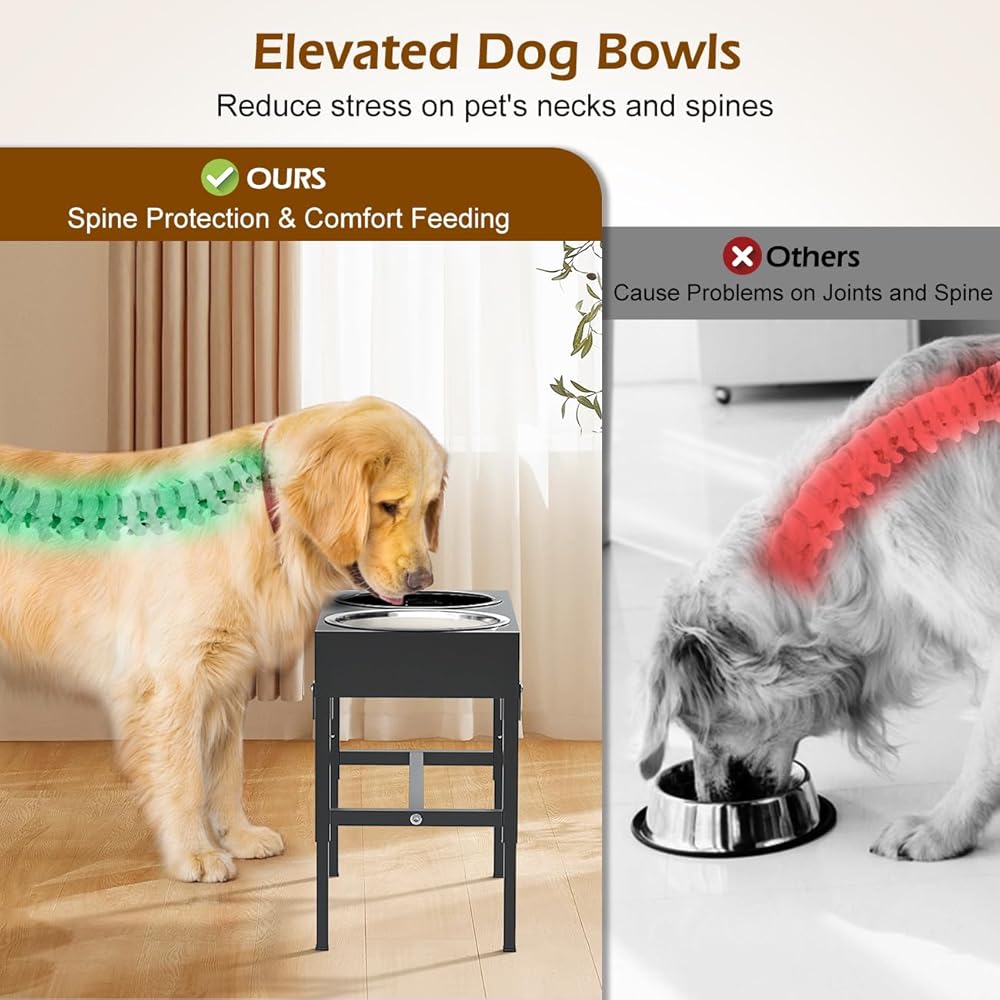 【Ideal for All Growth Stages】The elevated dog feeder can be adjusted to 3 different heights as needed. Just push the button and you can adjust the height to 9.8'', 11.6'', or 13.5'', grow with your dog from puppyhood to adult years. It can also be used for dogs of different breeds and sizes. If you encounter any problems or questions about our products, please feel free to contact us. We will respond within 24 hours and help you solve them.