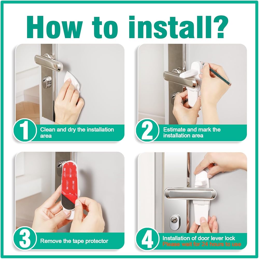 🔐تركيب بسيط: تم تثبيت غطاء مقبض الباب المقاوم للأطفال بمادة لاصقة 3M، فقط حدد موقع تثبيت القفل، ثم قم بتقشير ملصق الحماية اللاصق، ثم ثبت القفل على الوضع المقابل، لا يزيد عن 5 دقائق يمكنك إكمال كل شيء خطوات التثبيت، التثبيت بسيط جدا!