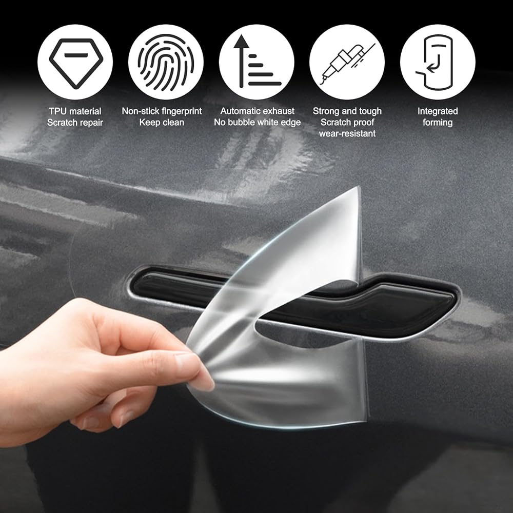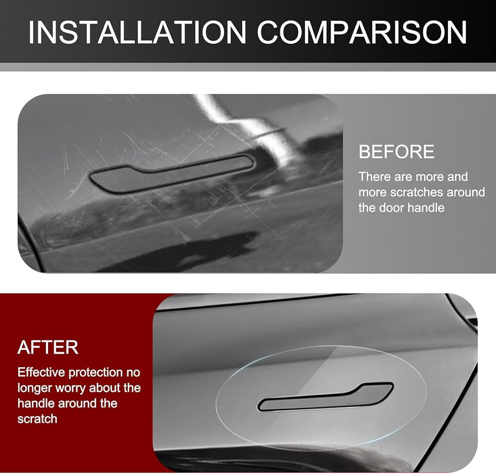 Widely Used: The car door handle protection stickers can ensure all-round protection around the car handle. The car door handle protection sticker is compatible with Tesla Model Y Model 3. Before purchasing, please make sure this car door handle protection sticker fits your vehicle.