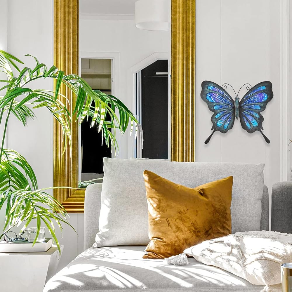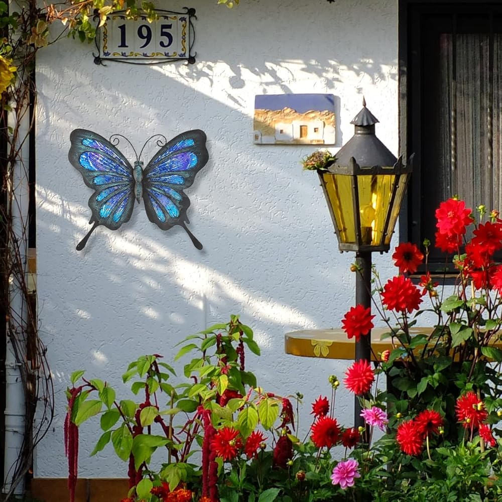 ديكور اليعسوب-مصنوع من معدن عالي الجودة يعالج ضد الصدأ وزجاج فاخر، مطلي يدويًا باللونين الأزرق والأخضر المتدرج. الخطاف الموجود في الخلف يسهّل تعليقه بينما يحتاج فقط إلى مسمار