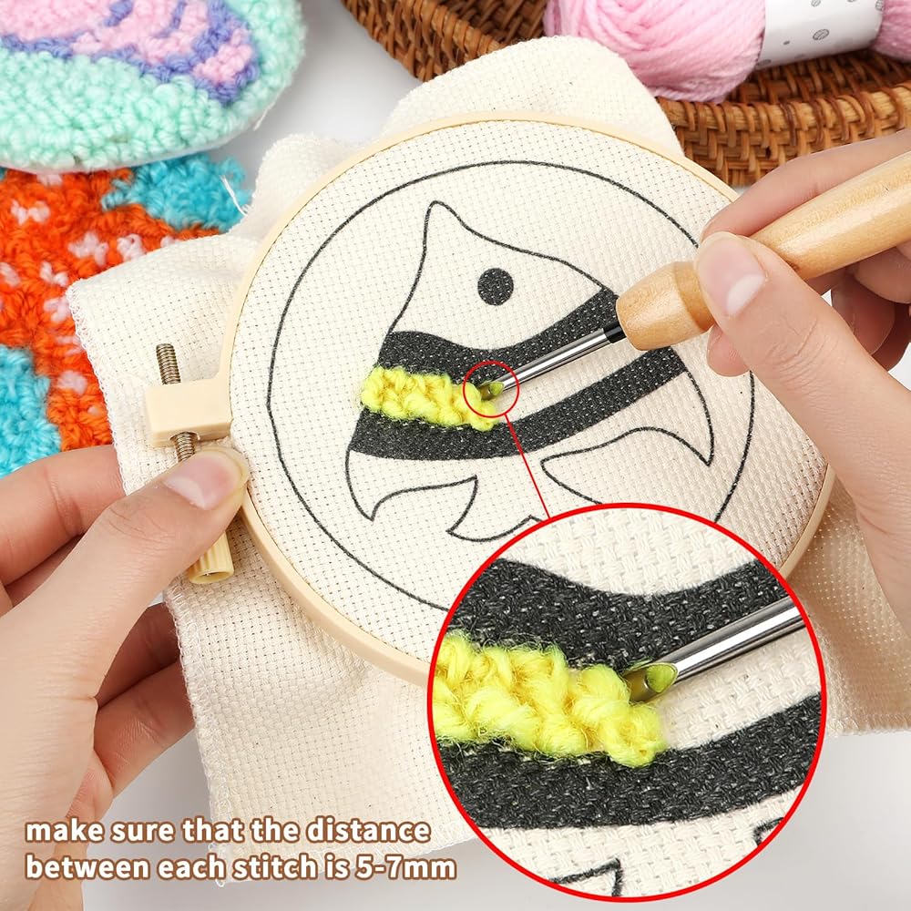 The needle punch kit is equipped with a needle threading tool, scissors, needles, embroidery hoops, detailed instructions, 6 canvases, 6 backing tapes, and 1 pack of colorful yarn balls, allowing you to create according to your own preferences and creativity. Both beginners and experienced handicraft enthusiasts can easily complete exquisite embroidery works.
