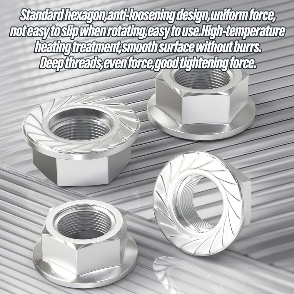 - 🛒صواميل شفة سداسية: مصنوعة من فولاذ كربوني عالي الجودة، وسطح مطلي بالزنك، ومقاومة جيدة للتآكل.