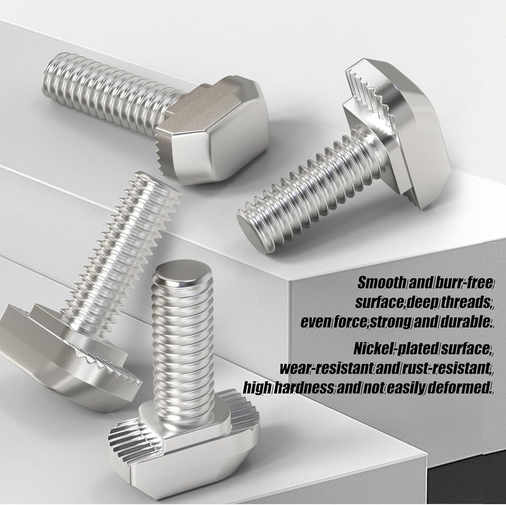 - 🛒مسامير على شكل حرف T: مصنوعة من الفولاذ الكربوني عالي الجودة، وسطح مطلي بالنيكل، مع مقاومة جيدة للتآكل ومقاومة للتآكل.