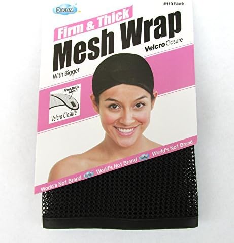 حلم، غلاف شبكي قوي وسميك مع إغلاق فيلكرو (المنتج #119 أسود)، مقاس واحد، نسيج شبكي رائع، شبكة، قماش، مريح، مادة ناعمة، إغلاق فيلكرو، نسج، وصلة شعر، قبعة شعر مستعار