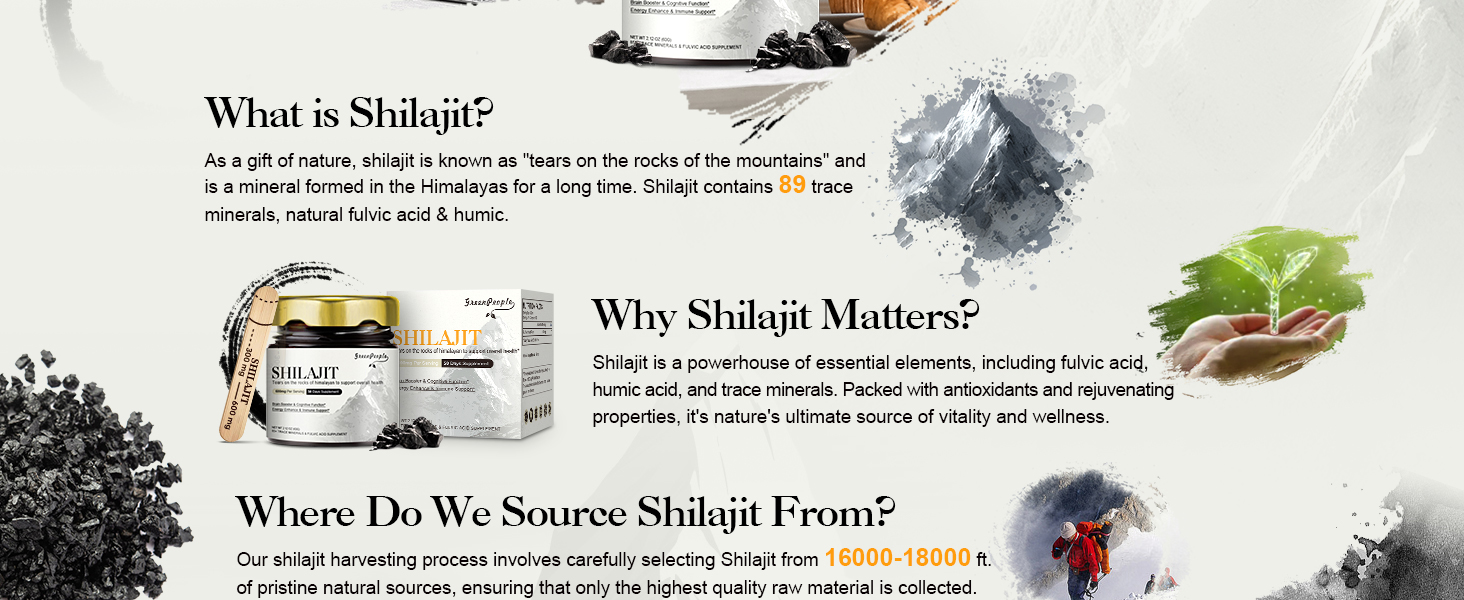 ارتفاع نقي، جودة لا مثيل لها: ينشأ راتنج شيلاجيت الخاص بنا من GREENPEOPLE من الارتفاعات البكر التي تتراوح من 16,000 إلى 18,000 قدم في منطقة جيلجيت-بالتستان في جبال الهيمالايا، مما يضمن جودة ونقاء لا مثيل لهما. إنه الخيار الأفضل للأفراد الذين يبحثون عن أسلوب حياة متوازن.