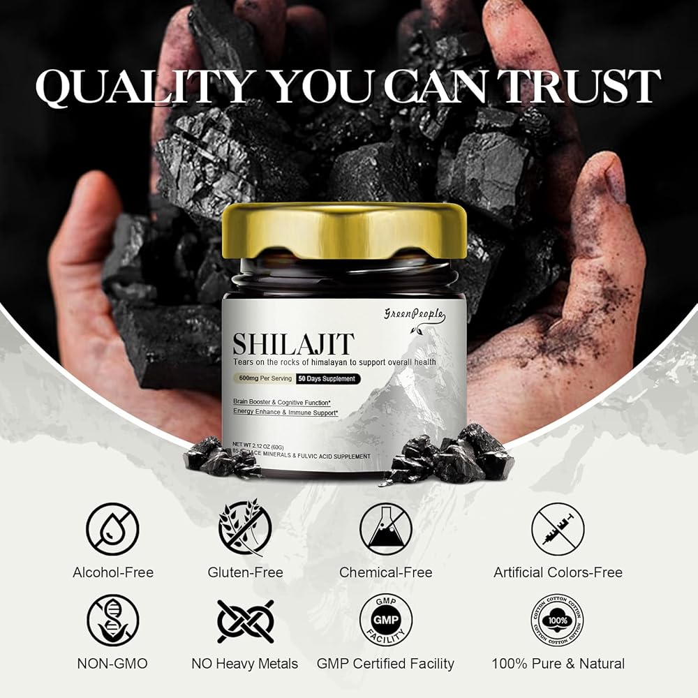 ضمان استرداد الأموال دون قلق: نحن ندعم منتجنا مع ضمان استرداد الأموال دون قلق. إذا كانت لديك أية مخاوف أو استفسارات، فكن مطمئنًا إلى أننا ملتزمون بمعالجتها على الفور، وعادةً ما نرد عليها في غضون 24 ساعة. تم تصنيع الشيلاجيت بدقة شديدة ليكون خاليًا من المعادن الثقيلة والمواد المضافة، مما يجعله مناسبًا للنباتيين. إنه المكمل الغذائي المفضل لكل من الرجال والنساء الذين يبحثون عن مصدر طبيعي وعالي الجودة لدعم الصحة.