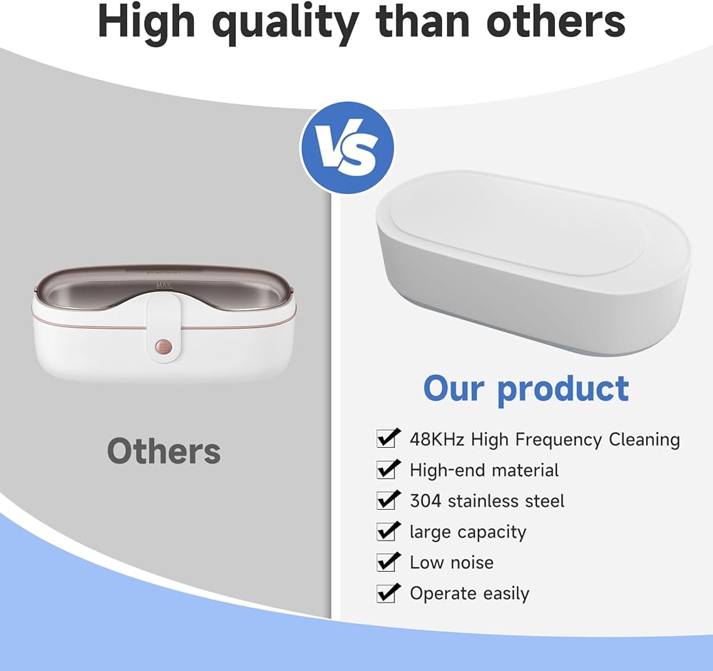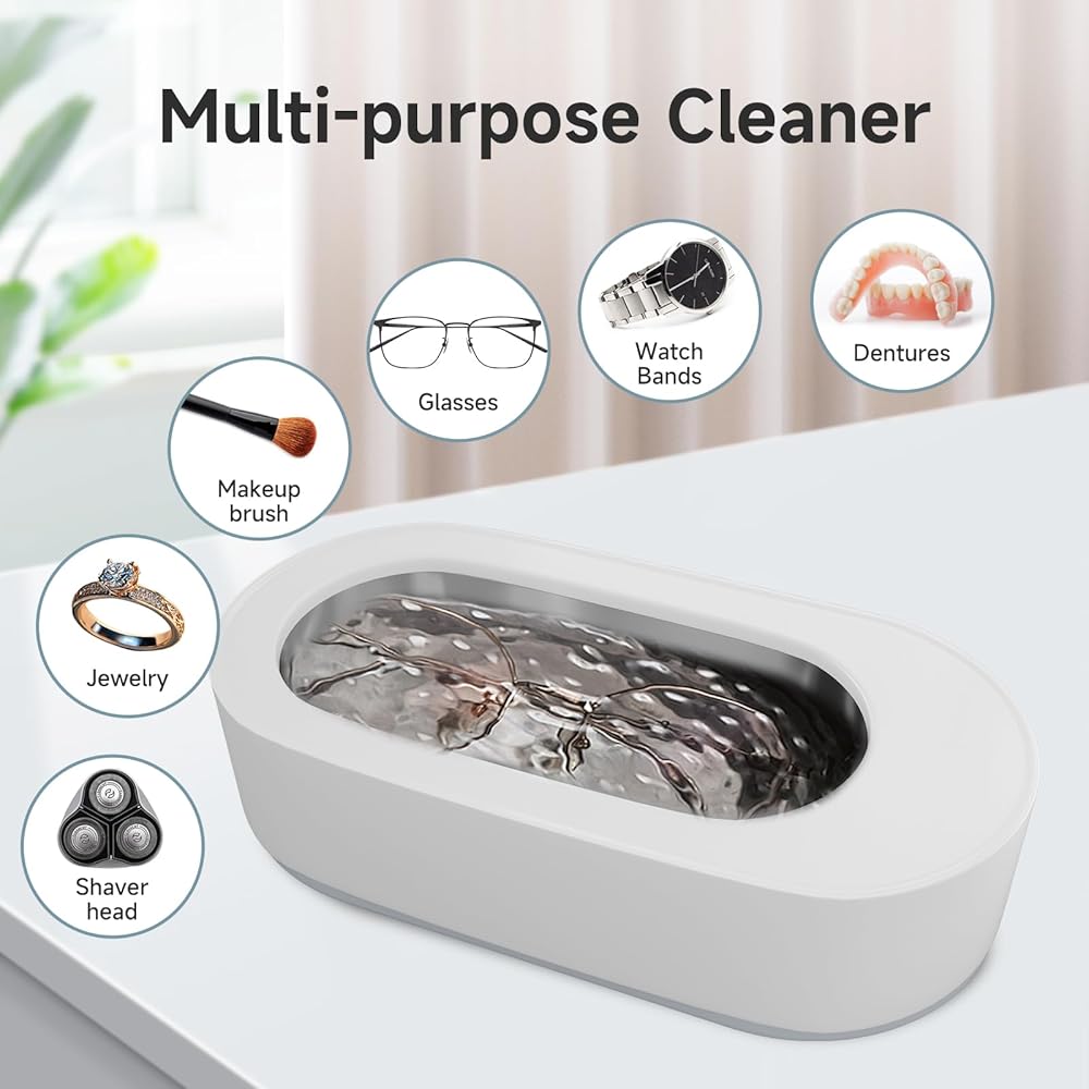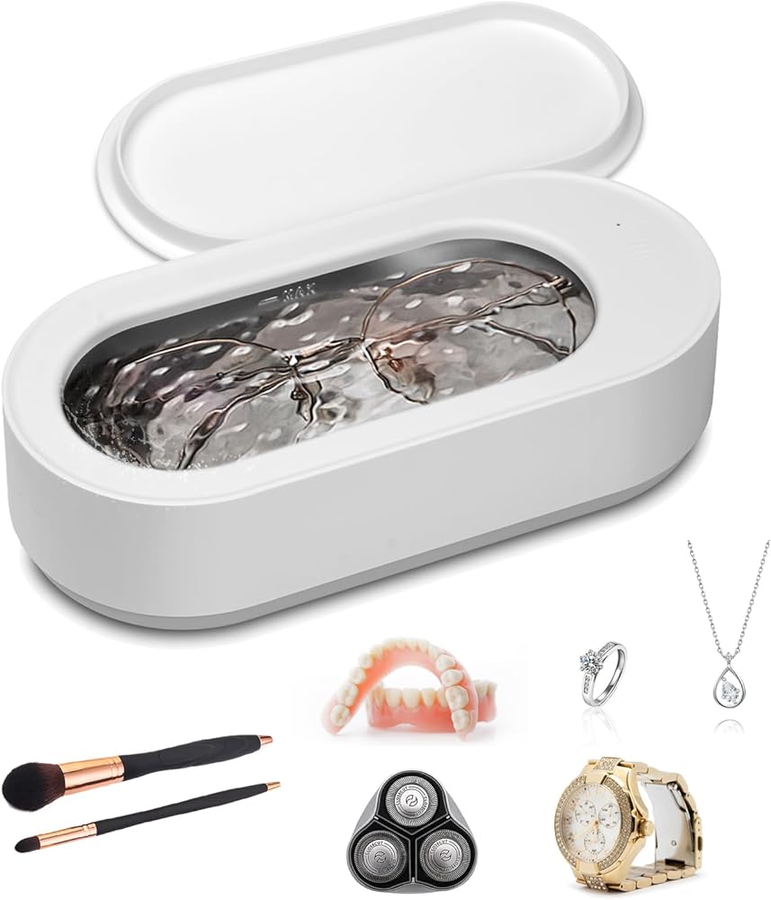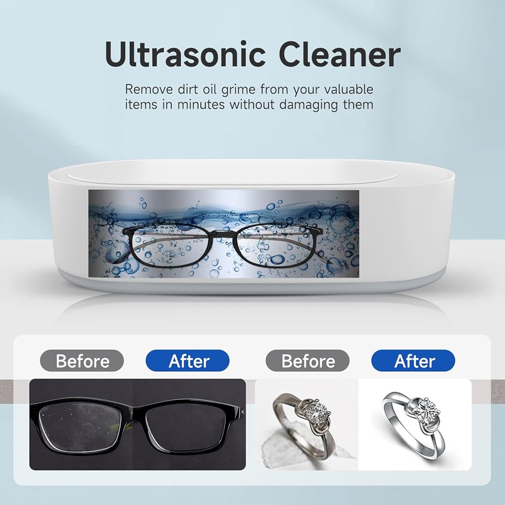 منظف المجوهرات بالموجات فوق الصوتية من إيكوين، منظف بالموجات فوق الصوتية 45 كيلو هرتز مع خزان من الفولاذ المقاوم للصدأ 304، منظف المجوهرات لآلة الموجات فوق الصوتية مع تشغيل بلمسة واحدة للنظارات والخواتم والقلائد وأطقم الأسنان