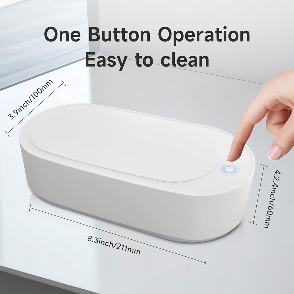 سهل التشغيل: تم تصميم منظف المجوهرات بسلك طاقة قابل للتوصيل والتشغيل، وهو مجهز بلوحة تشغيل بسيطة وواضحة بزر واحد تسمح للمستخدم ببدء برنامج التنظيف بقابس واحد فقط وضغطة واحدة. .