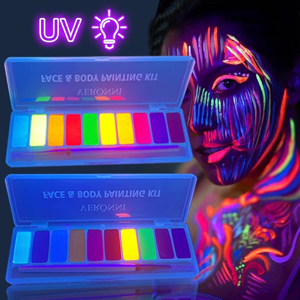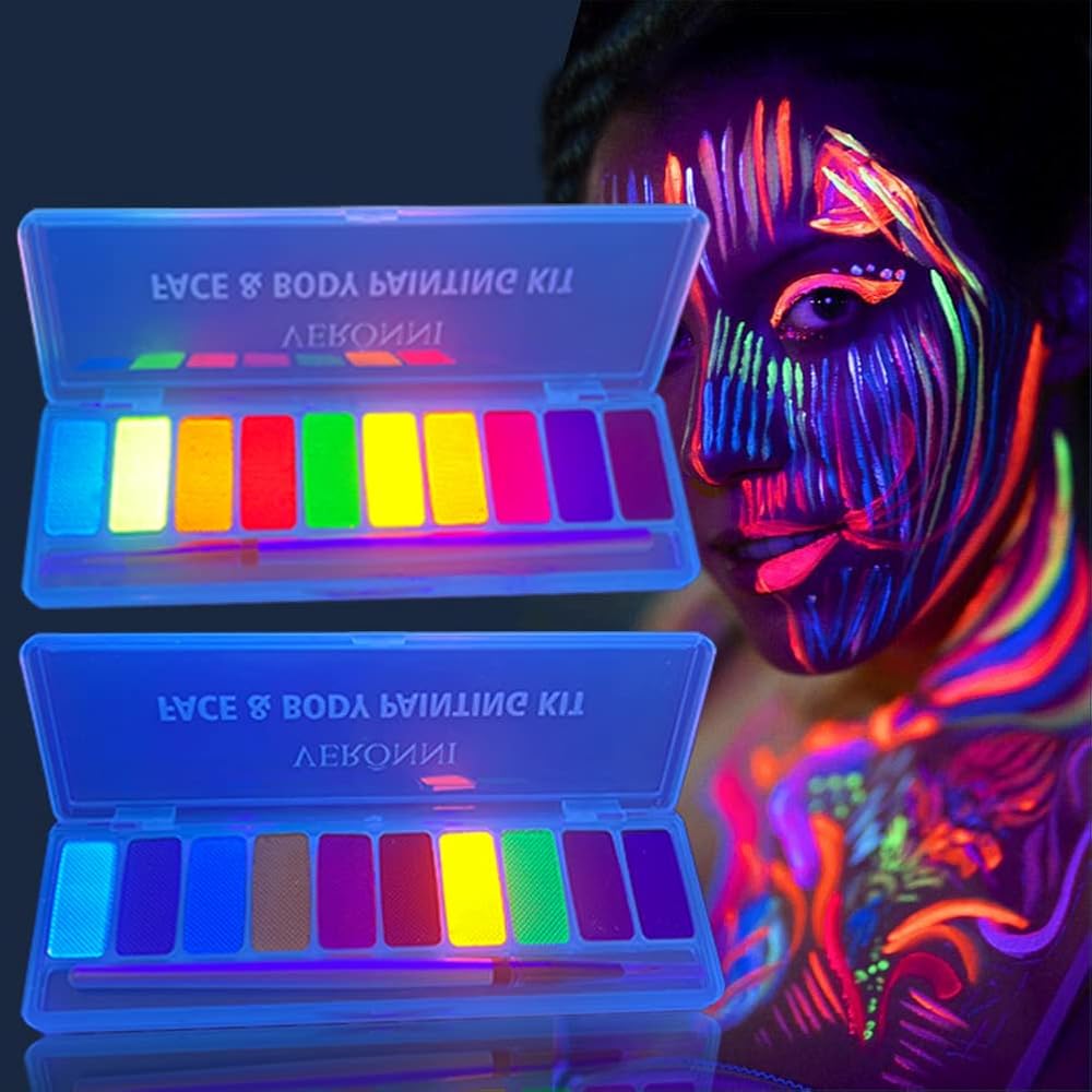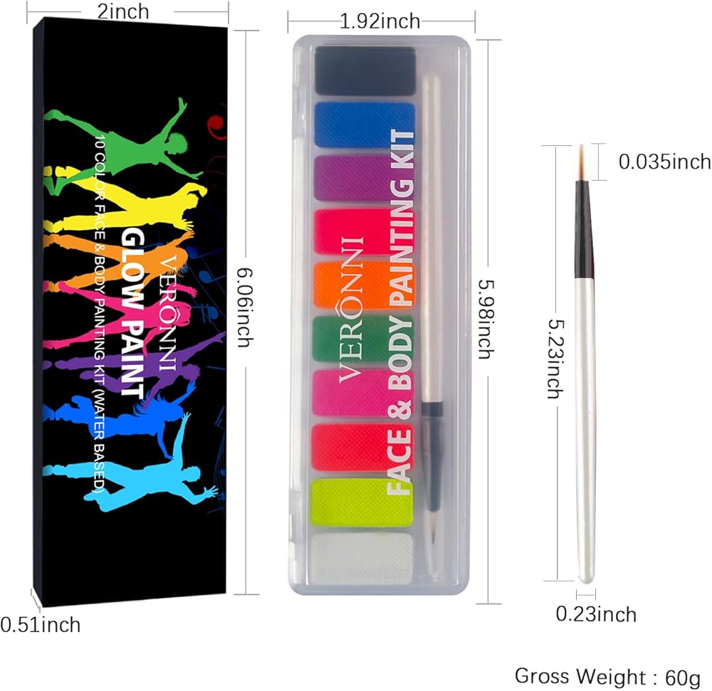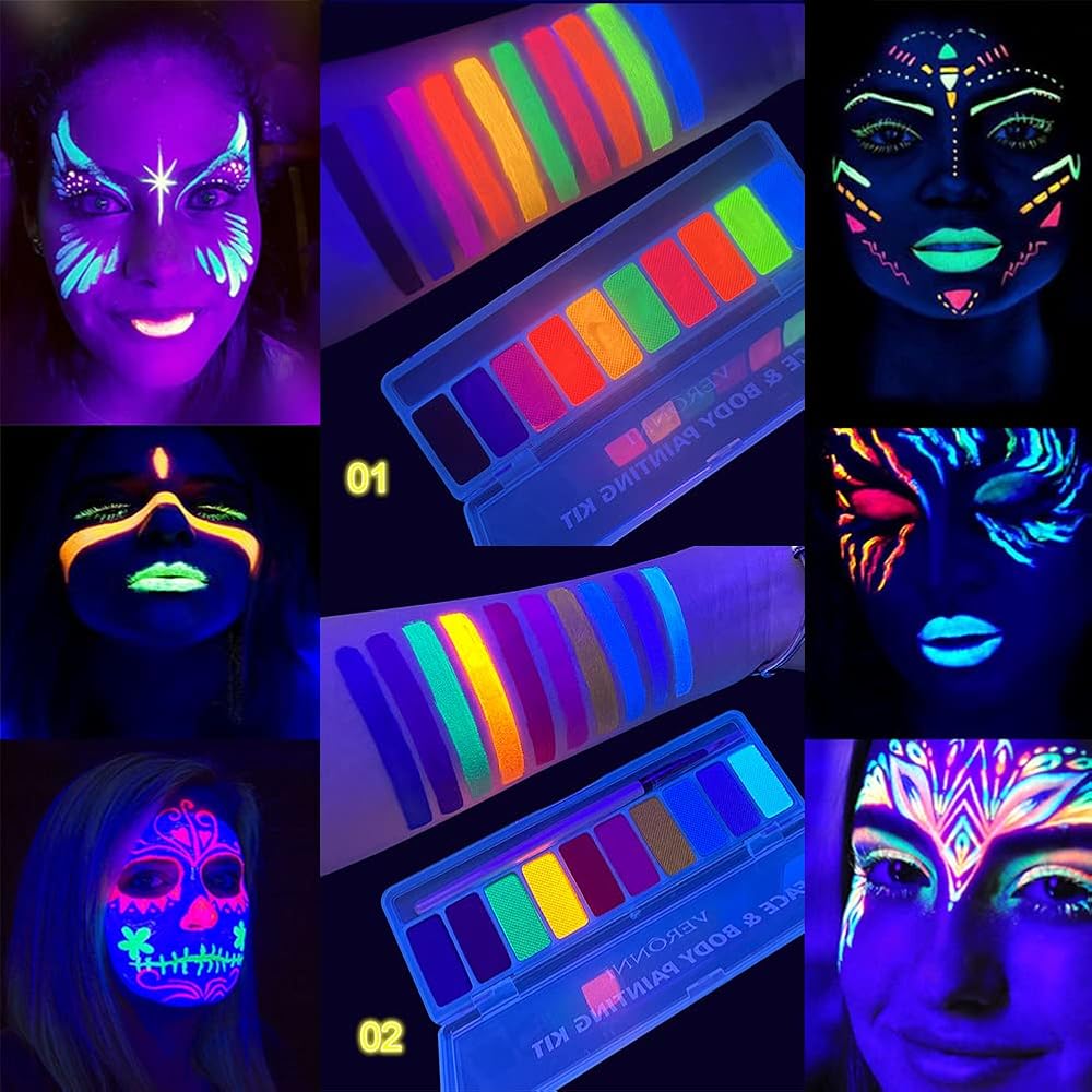 【طلاء وجه متوهج بالأشعة فوق البنفسجية 】- يجب استخدام لوحة طلاء الوجه المتوهجة في الظلام مع ضوء الأشعة فوق البنفسجية، الذي يتوهج بشكل مشرق تحت ضوء الأشعة فوق البنفسجية، وسوف يجعل الألوان تتوهج في الظلام.