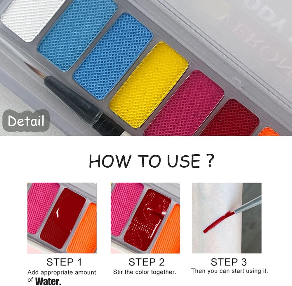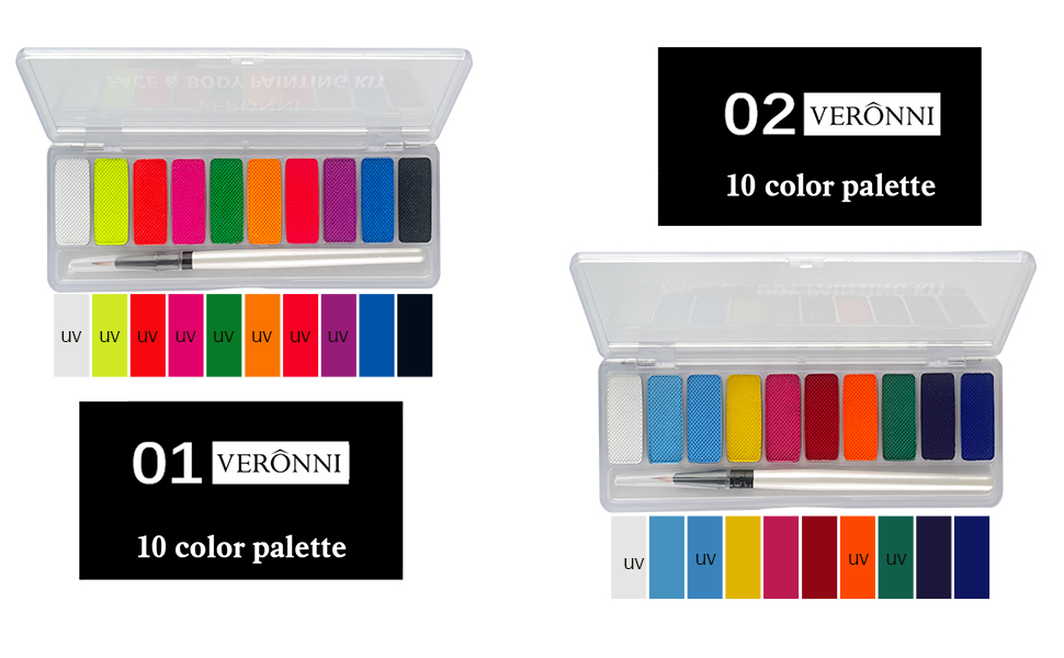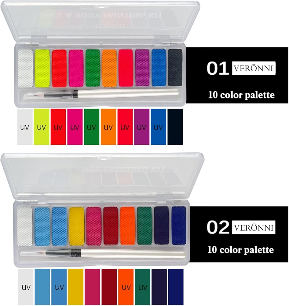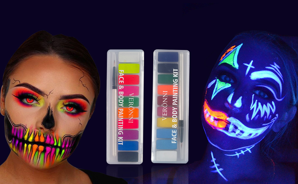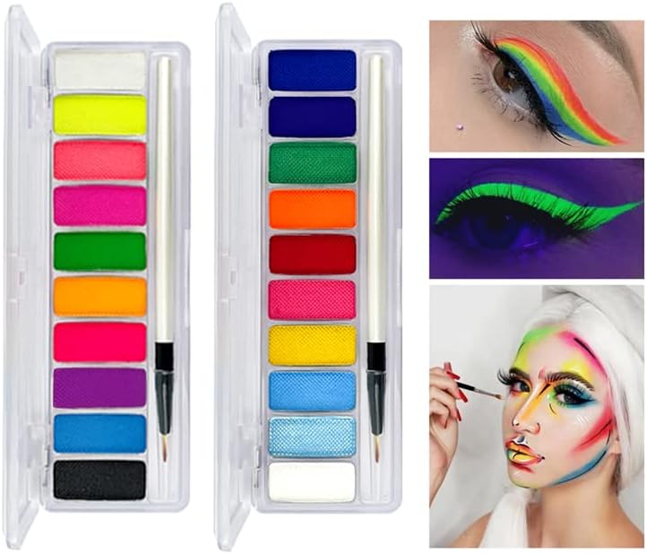 【طلاء وجه متوهج بالأشعة فوق البنفسجية 】- يجب استخدام لوحة طلاء الوجه المتوهجة في الظلام مع ضوء الأشعة فوق البنفسجية، الذي يتوهج بشكل مشرق تحت ضوء الأشعة فوق البنفسجية، وسوف يجعل الألوان تتوهج في الظلام.