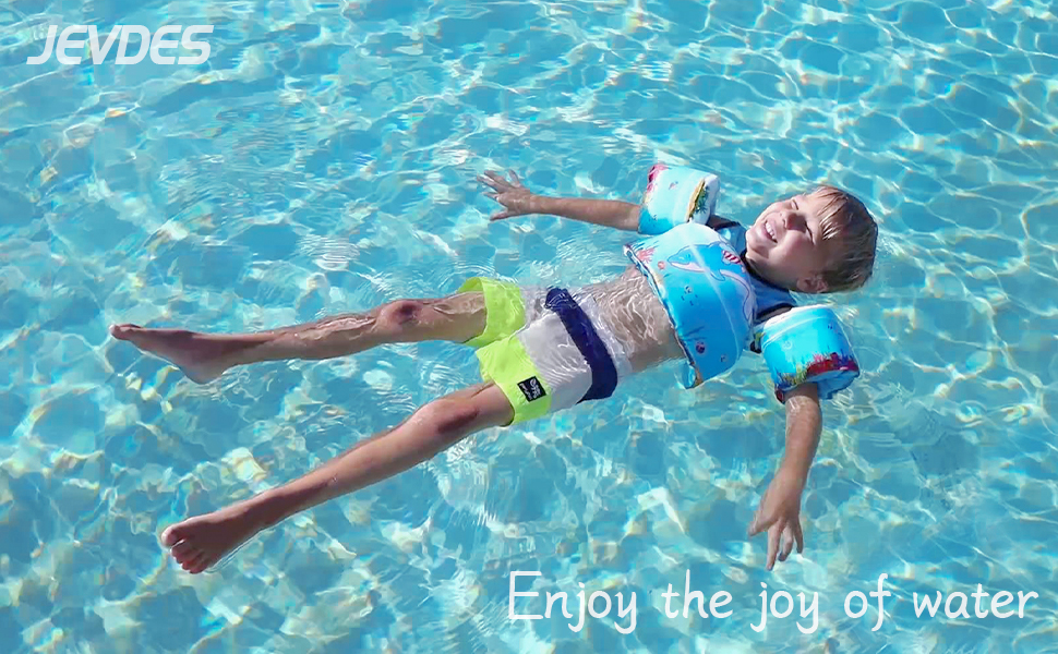 • 🏊‍♂️Application🏊‍♂️: Baby swim training included net bag, kids arm wing for water park, children swim outdoor training.Versatile use for various water activities.Get your child ready for any water adventure with JEVDES swim vest.