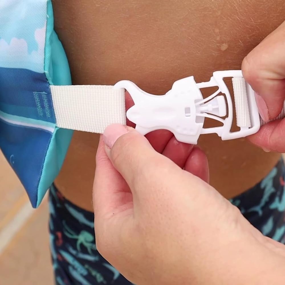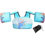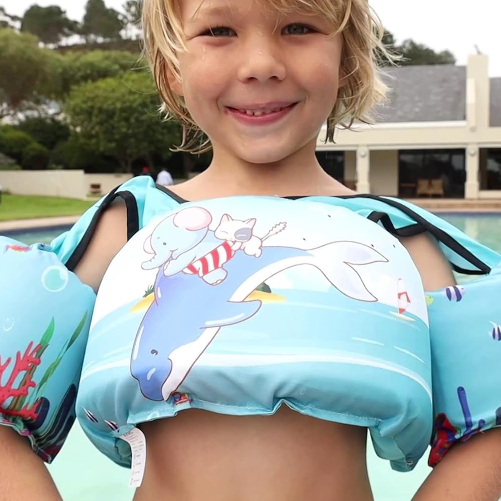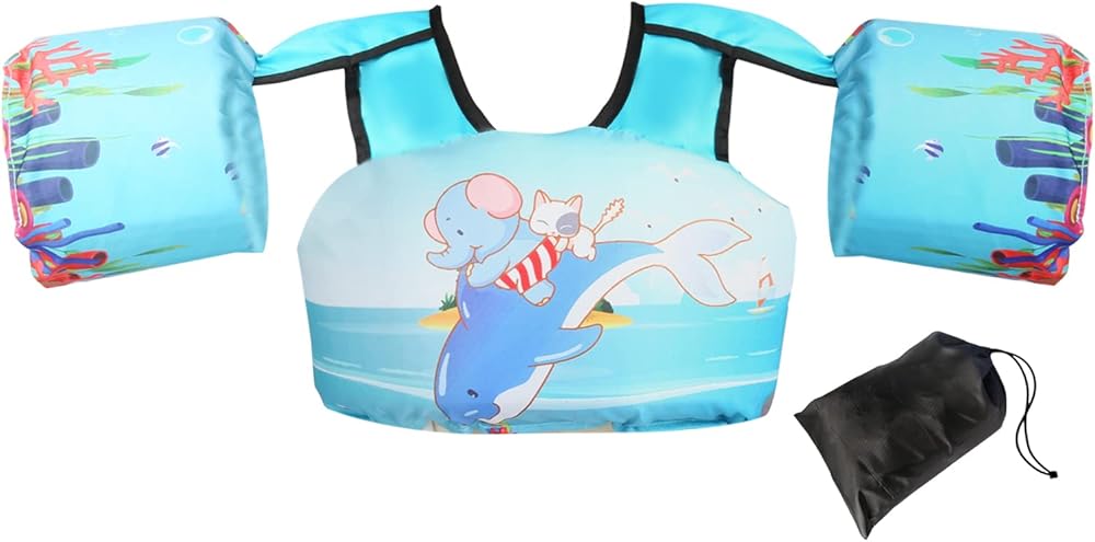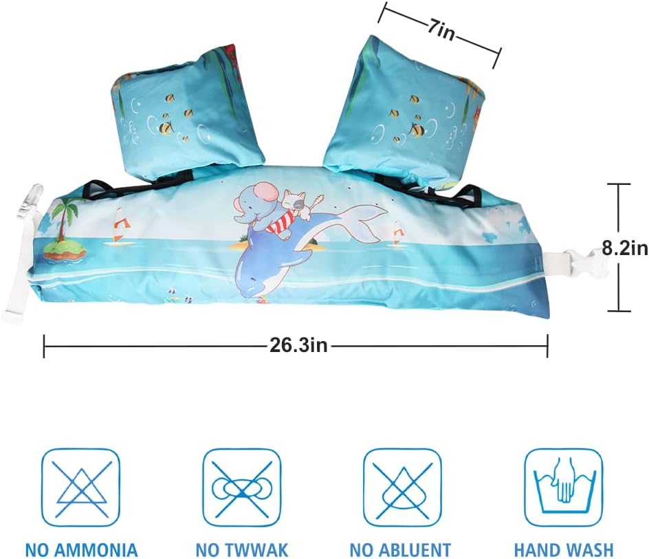 JEVDES Children's Swimming Vest is made with high-quality non-woven waterproof polyester material, ensuring both durability and comfort for your child. The cute cartoon pattern design adds a touch of fun to their swimming experience. Tested to CPSC product safety regulation, this swim vest with sleeves is fastened with safety buckles on the child's back, preventing them from taking it off without parent supervision. The adjustable chest size and double-security buckle ensure a comfortable and secure fit for your child. Suitable for 2-7 years old unisex child, this swim vest supports 22-76lbs weight for baby use. It comes with a net bag for easy storage and transportation, making it perfect for baby swim training, kids arm wing for water park, and children swim outdoor training. Help your child build confidence in the water with JEVDES swim vest.
