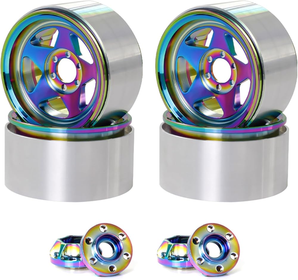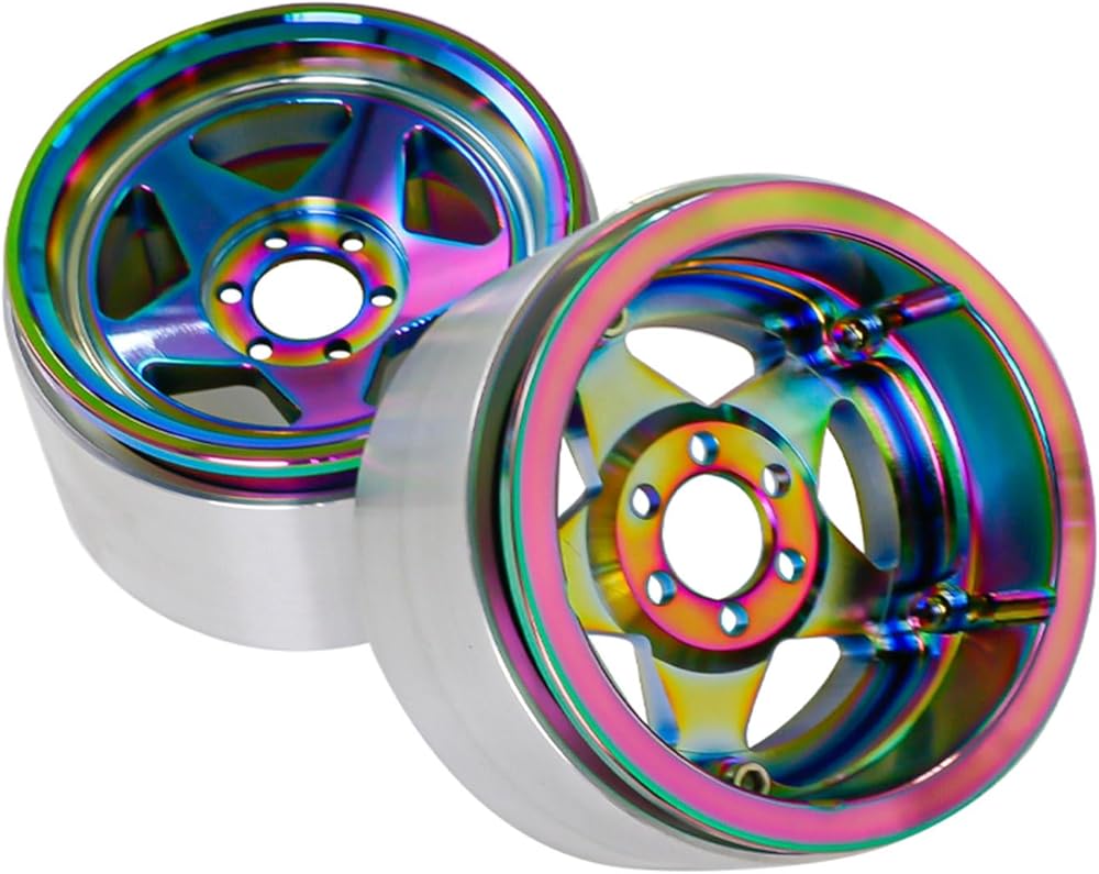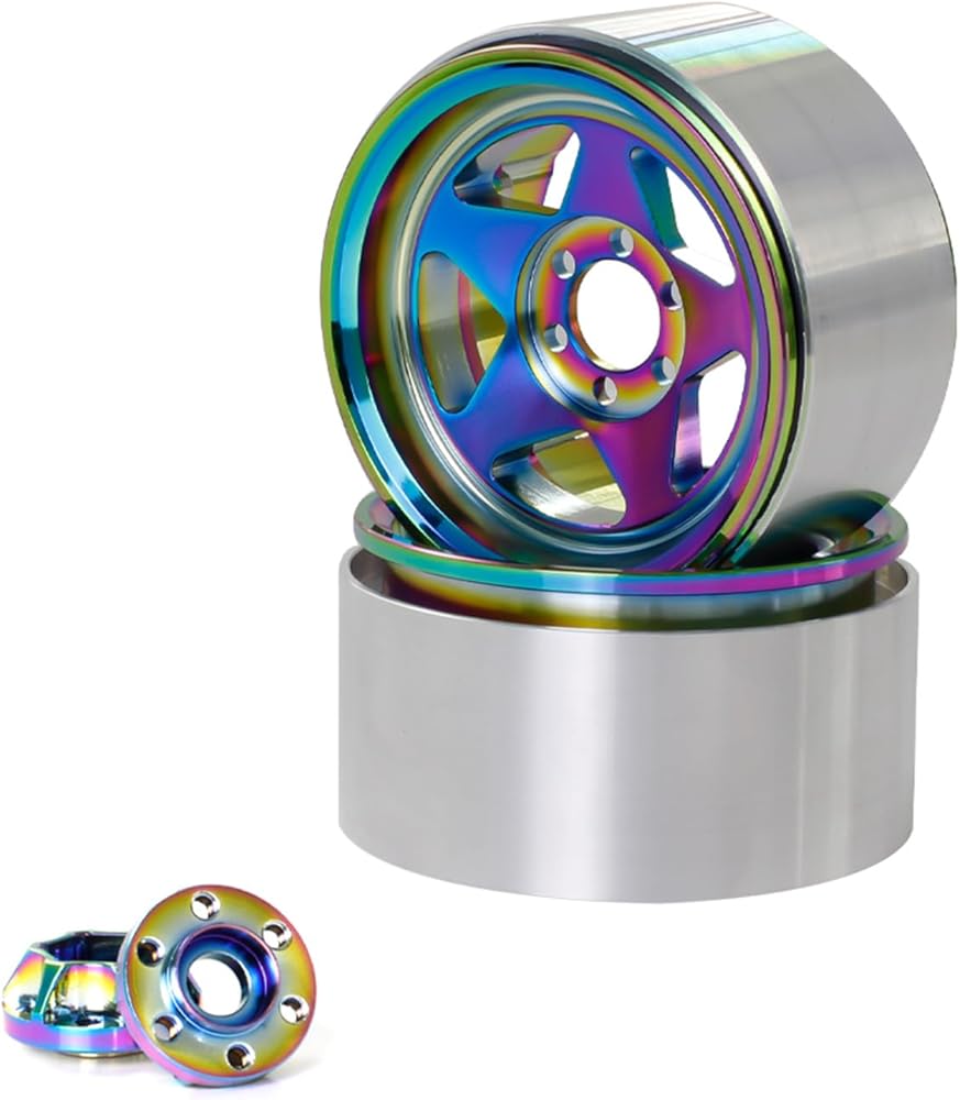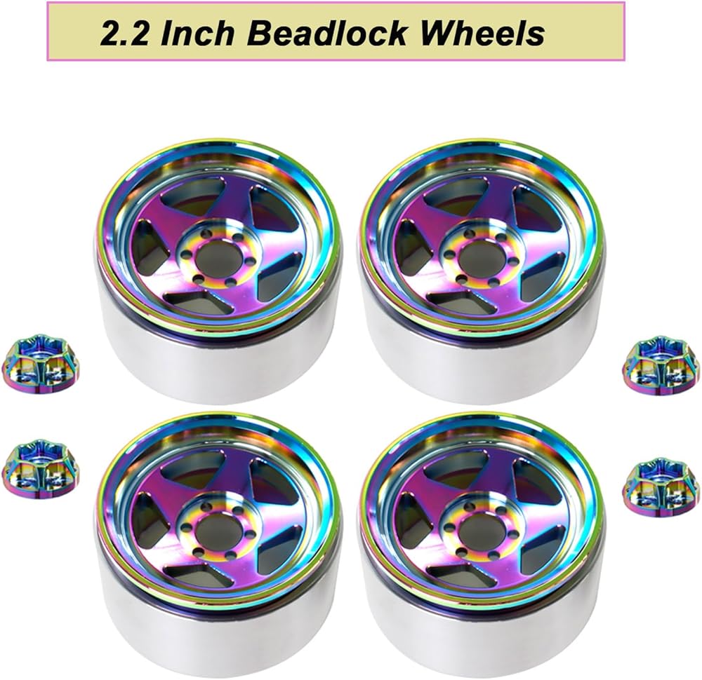 2.2" Beadlock Wheels Rims Offset for 1/10 RC Rock Crawler Car Axial Wraith RR10 SCX10 90046 YETI D90 CC01 RC Crawler Car Upgrade Parts (Rainbow Color)