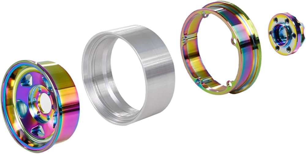 Special Crafts: 2.2 Inch wheel hub adopts rainbow color anodized, so each wheel hub has a unique appearance, different angles will emit different colors,enhancing its visual appeal.
