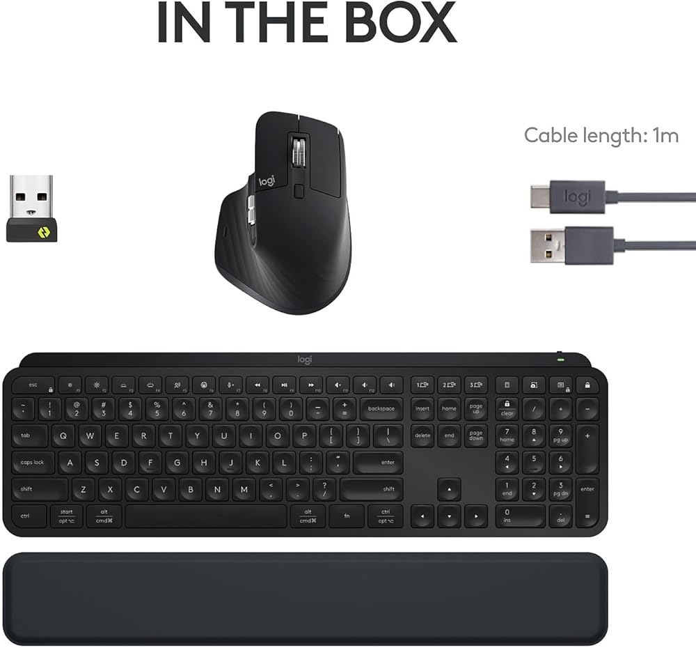 Logitech MX Keys S Combo - لوحة مفاتيح وماوس لاسلكي عالي الأداء مع مسند راحة اليد (متجدد)