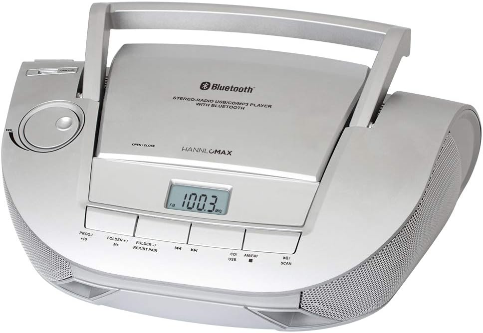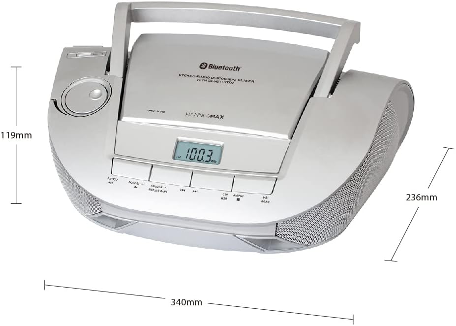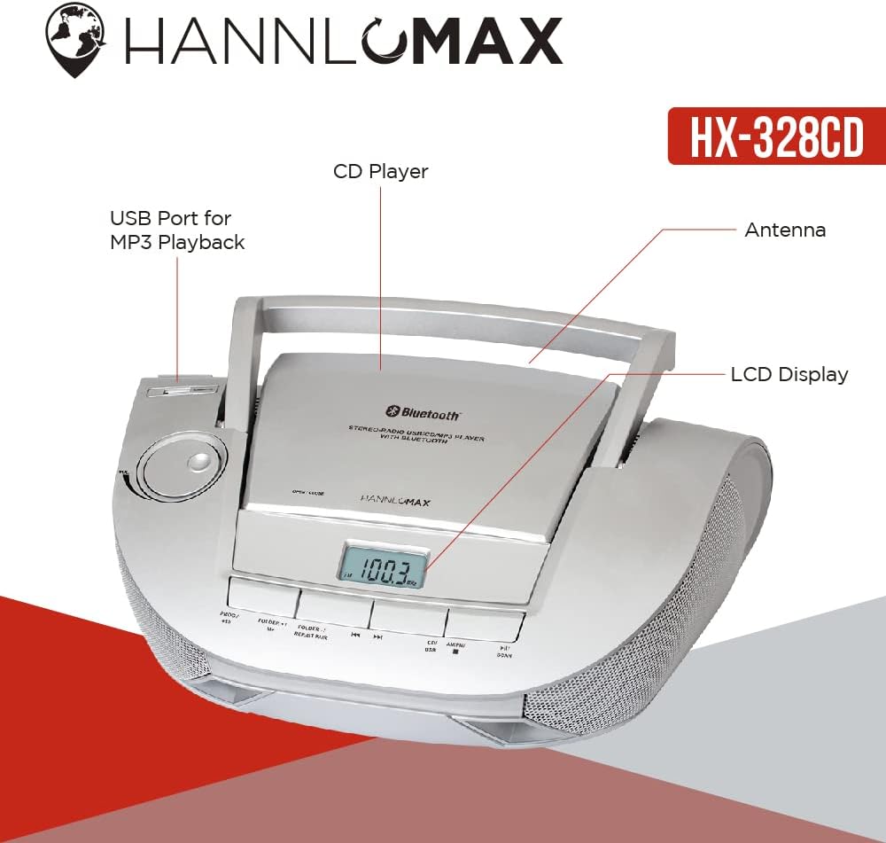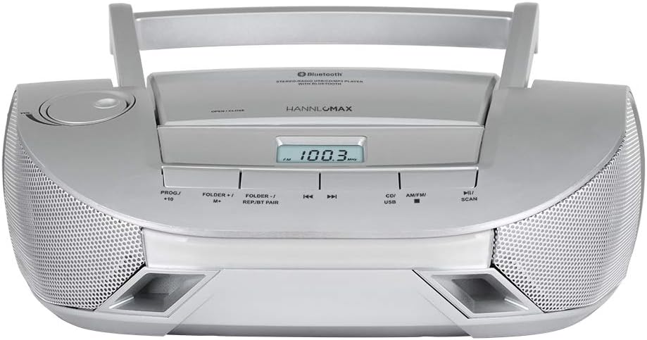 Portable CD Boombox, PLL AM/FM Radio, Bluetooth, USB Port for MP3 Playback, Aux-in, AC/DC Dual Power Source.