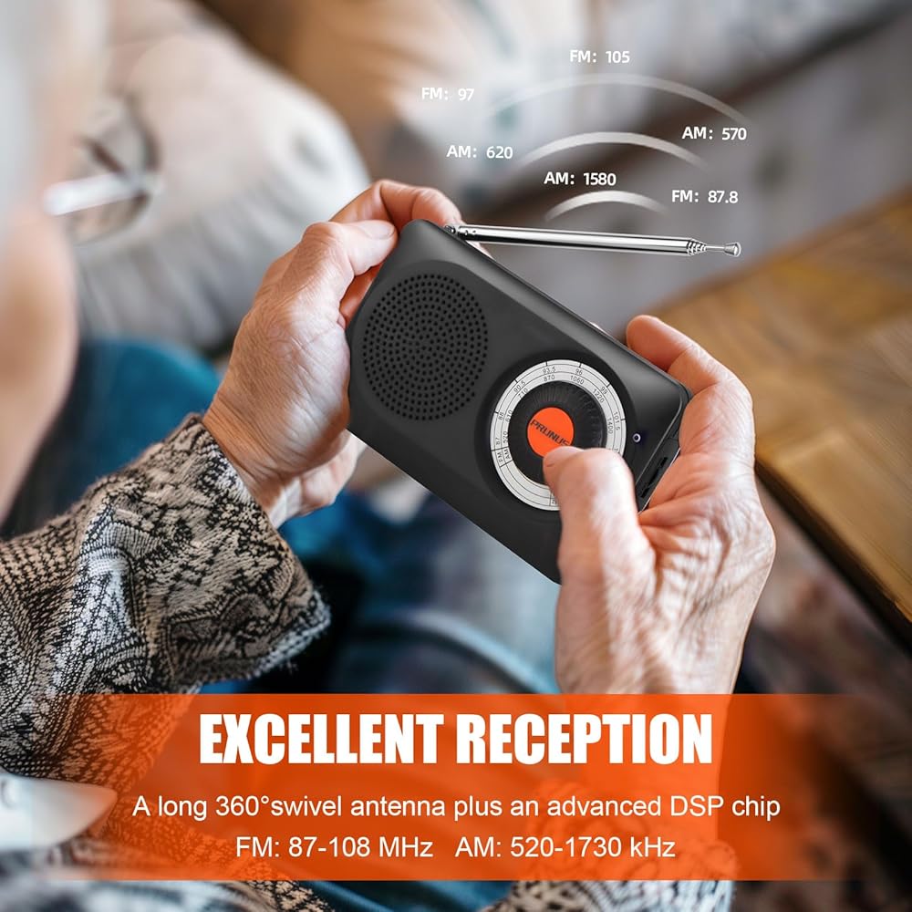 【استقبال ممتاز 】 FM: 87-108 ميجا هرتز، AM: 520-1730 كيلو هرتز. راديو am fm الخاص بنا ليس مجهزًا بهوائي طويل دوار 360 درجة مقاس 16.5 بوصة فحسب، ولكنه أيضًا مدمج في شريحة DSP قوية. ولذلك، فإن راديو الجيب am fm هذا سيحظى بالتأكيد باستقبال جيد. بغض النظر عن المدينة أو حتى المنطقة النائية التي تتواجد فيها، يمكنك الحصول على المحطات بسهولة.