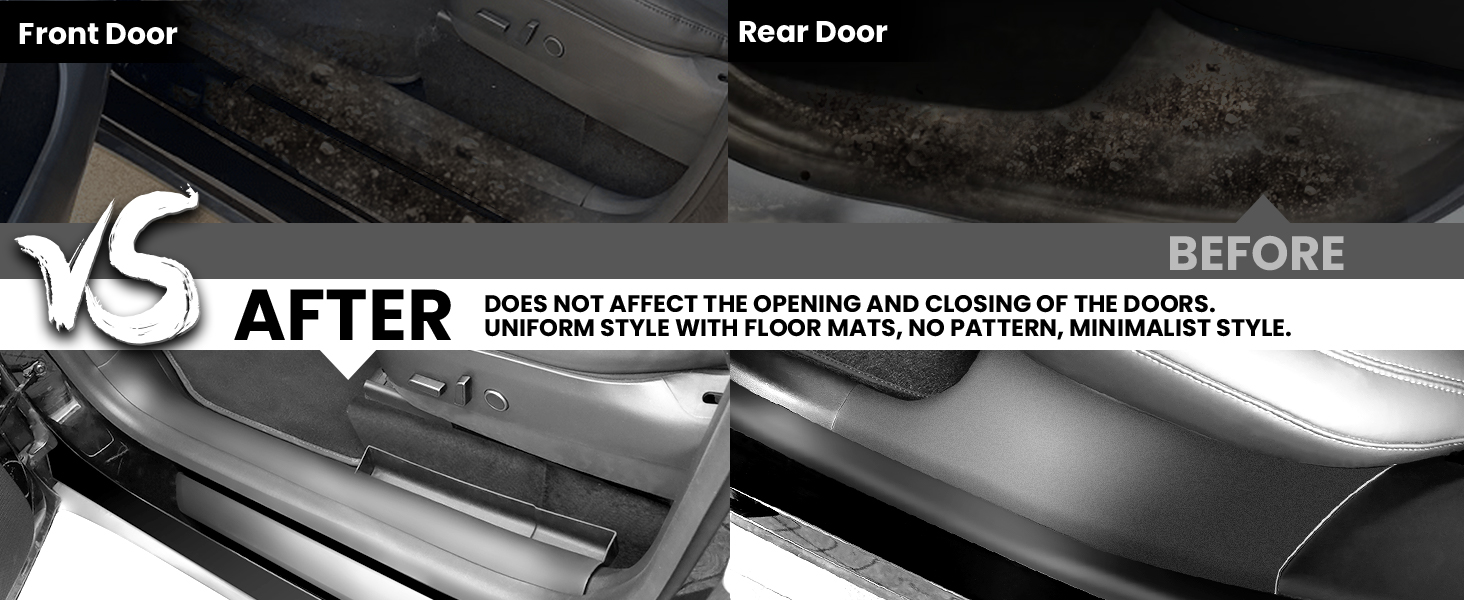 【حماية من جميع الأحوال الجوية】: لا يمكنها فقط حماية عتبة الباب من الخدوش والتآكل والركلات والبقع، ولكن أيضًا يمكن أن تكون إكسسوارًا داخليًا رائعًا. مناسبة لجميع ظروف الطقس والطرق، تحمي سيارتك من الطين والرمل والصخور والمطر والثلج والملح وغيرها من الحطام. يمنع الخدوش ويحافظ على نظافة جسم السيارة.