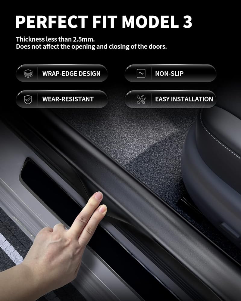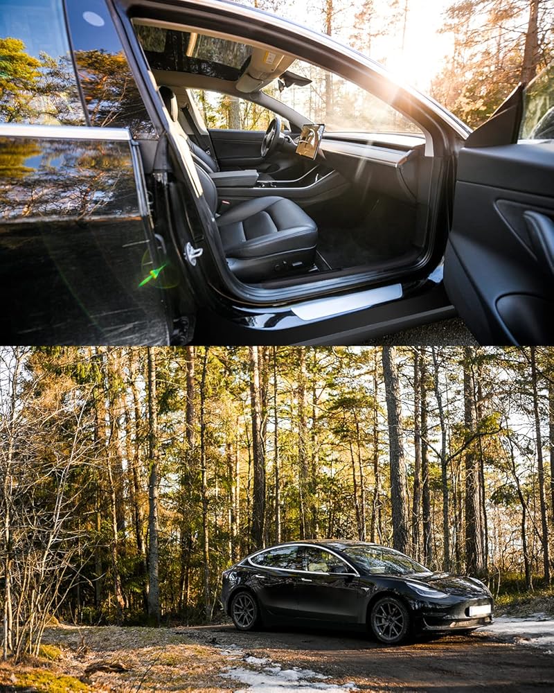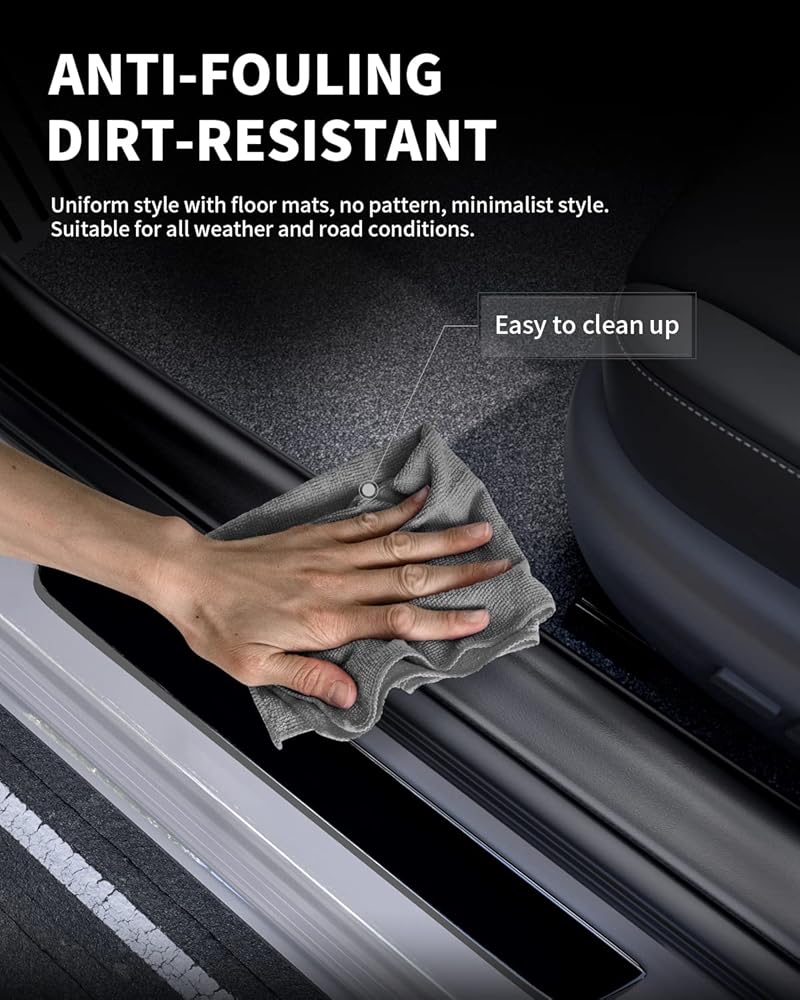 【تصميم مخصص】: تم تصميم واقي عتبة الباب LASFIT خصيصًا لطراز Tesla Y 2023 مع عتبة الباب الخلفي للسجاد. تناسب فقط 5 مقاعد، ولا تناسب 7 مقاعد. سمك أقل من 2.5 ملم، لا يؤثر على فتح وإغلاق الأبواب. نمط موحد مع سجادات أرضية، بدون نمط، نمط بسيط. خفيفة الوزن ومقاومة للاهتراء، وسهلة التنظيف، ولن تحتاج إلى القلق بشأن اهتراء عتبات الأبواب البلاستيكية الأصلية من تيسلا واتساخها بعد الآن.