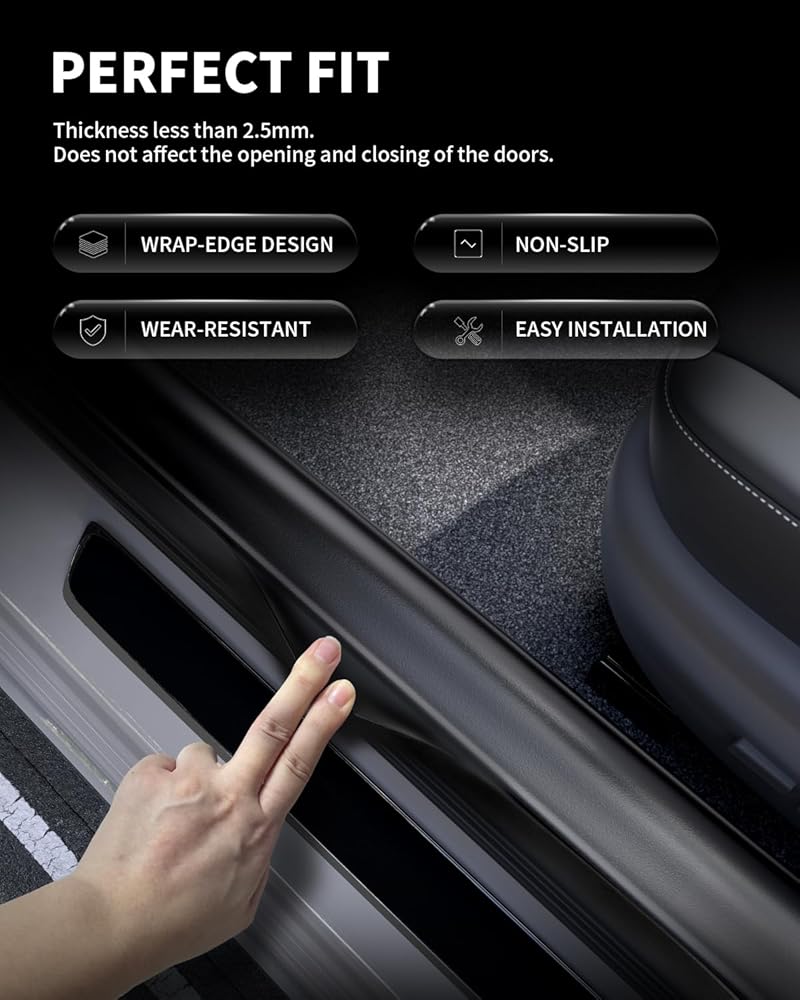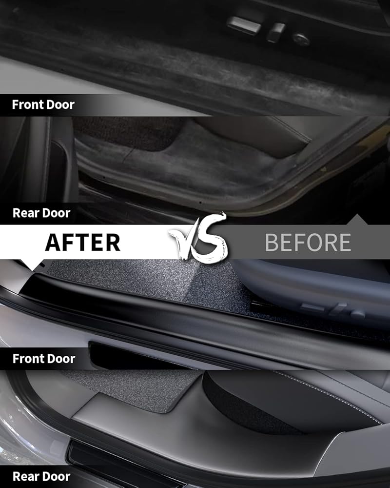 【ما تحصل عليه: 2 × واقيات عتبة الباب الأمامي، 2 × واقيات عتبة الباب الخلفي، 1 × دليل المستخدم. ضمان استرداد الأموال لمدة 45 يومًا، وضمان استبدال لمدة عام من تاريخ الشراء. دعم خدمة العملاء الاحترافي في الولايات المتحدة.