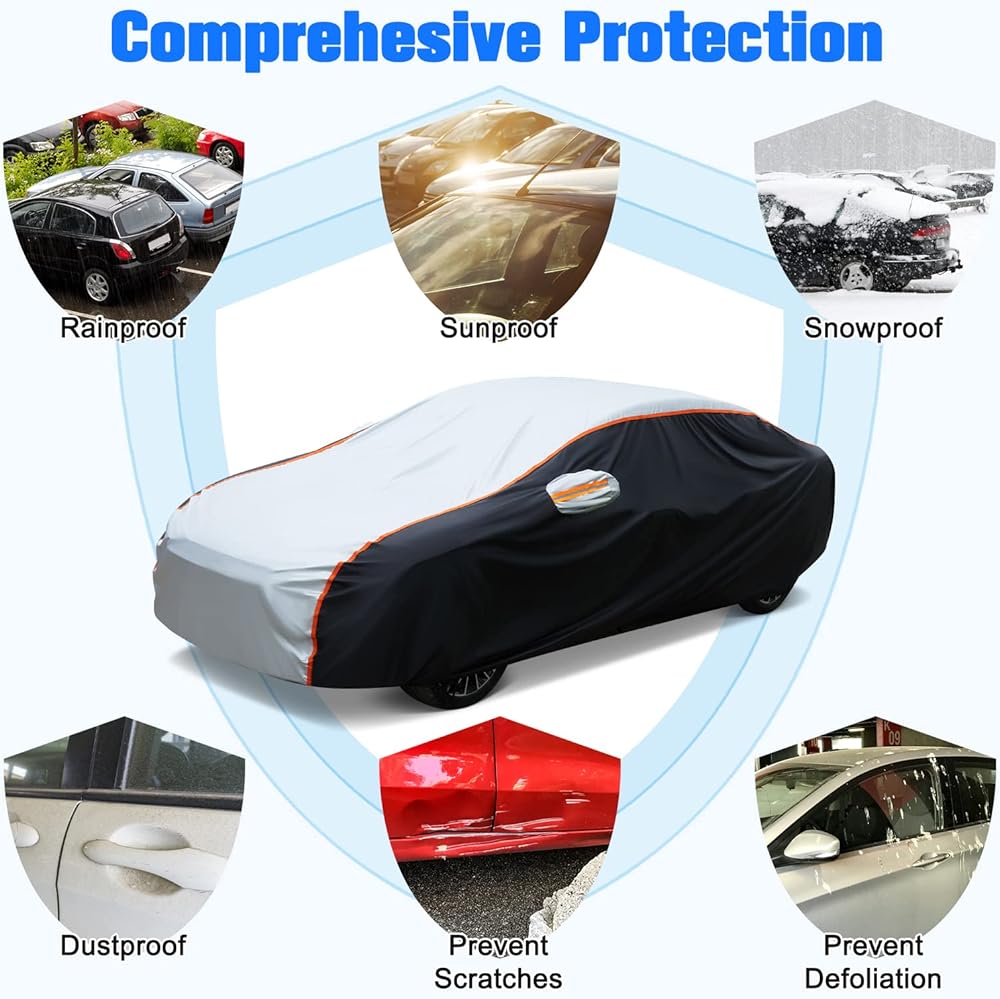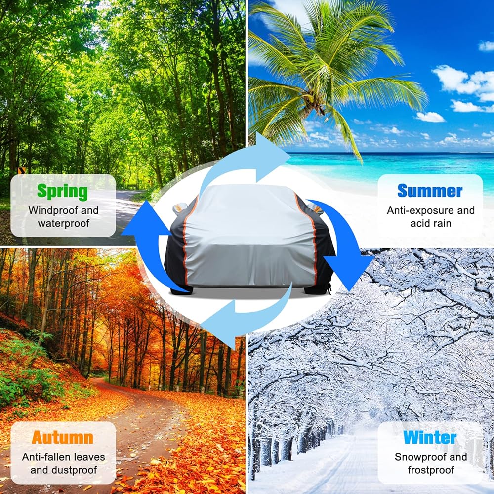 🚐【غطاء حماية للسيارة في الفصول الأربعة】غطاء سيارة سيلنوفو مصنوع لحماية السيارة من جميع الأحوال الجوية في جميع المواسم. يمكنه حماية سيارتك بعيدًا عن الشمس والمطر والأوراق والدبير والغبار والخدوش والثلج والملوثات الصناعية وفضلات الطيور (إلخ). مثالية للاستخدام الخارجي والداخلي!