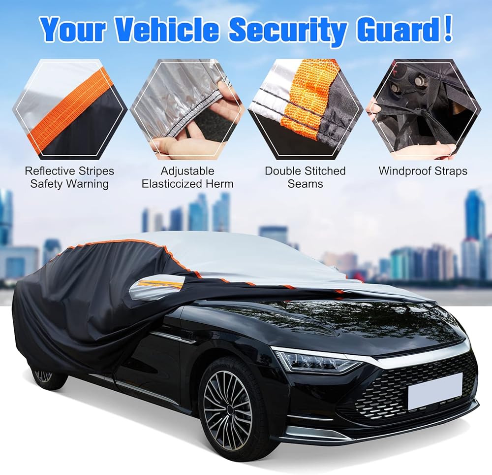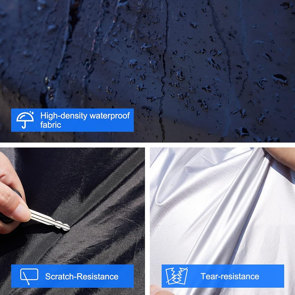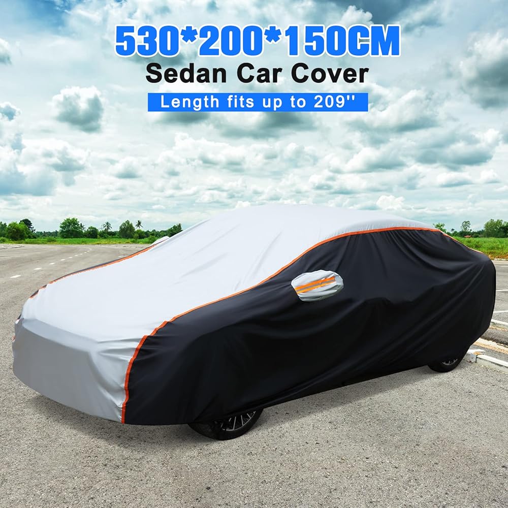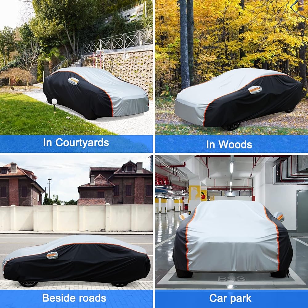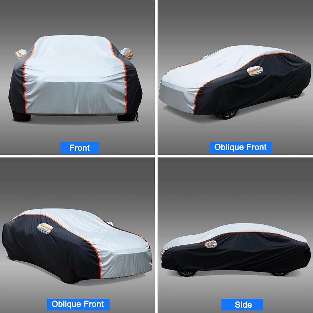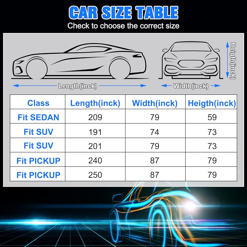 🚐 【نصيحة الحجم المختار】تم تصميم غطاء السيارة الفضي والأسود هذا ليناسب سيارات السيدان التي يصل حجمها إلى 209 × 79 × 59 بوصة. نصيحة-1. سيارات الدفع الرباعي أو سيدان هاتشباك أو شاحنة بيك اب ممتدة / كابينة الطاقم، 2. تاريخ الصنع، 3. طول السيارة.