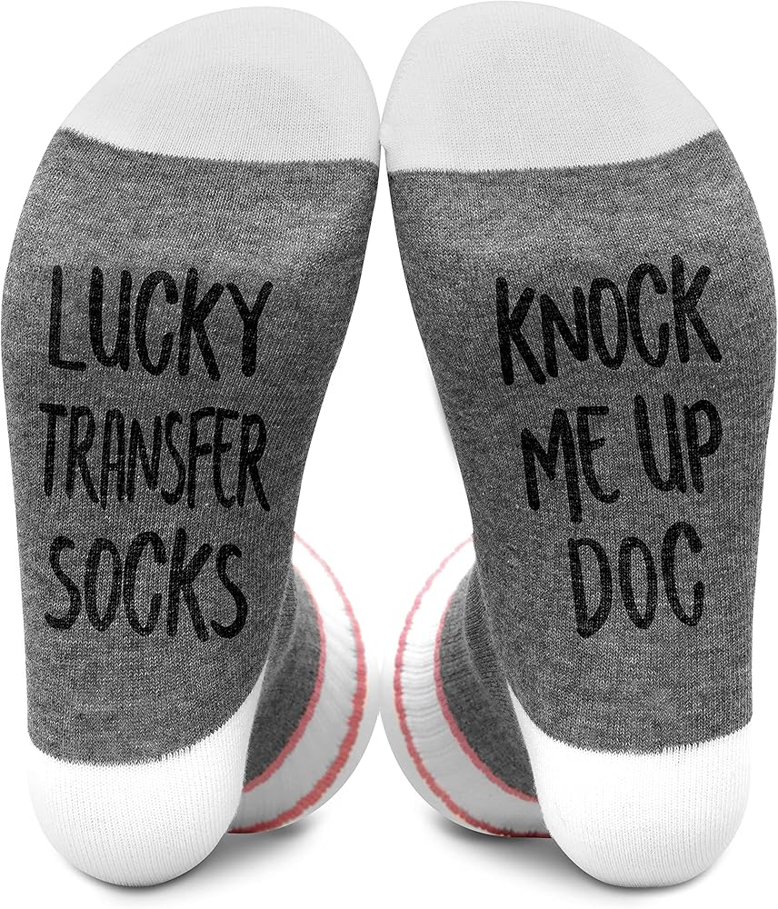 Perfect Size: Our high-quality socks are an average size, 5.5-11. What You Get: 1 pair of socks packaged in a plastic bag. Durable Material: These comfy socks use combed cotton to ensure our socks are soft, breathable, comfortable and stretchy. This material gives socks a wonderful year-round feel, without being too warm in summer or too cold in winter. Perfect Gift Idea: These socks are super soft and warm to keep you comfortable on your retrieval and transfer days! These also make for a perfect gift for your family & friends who are going through their journey of becoming parents. These funny socks are suitable for all kinds of parties and daily use.