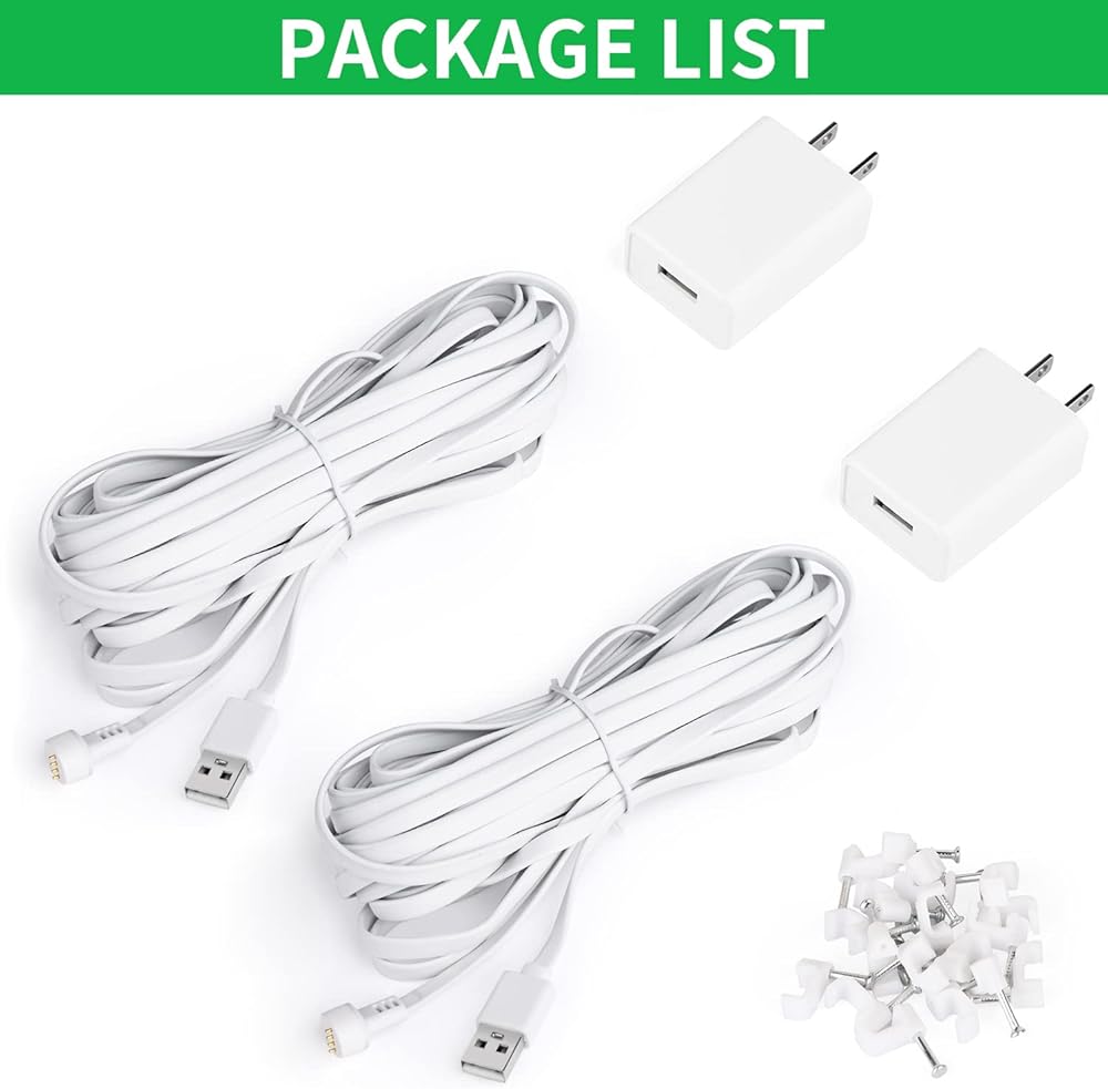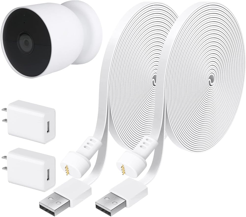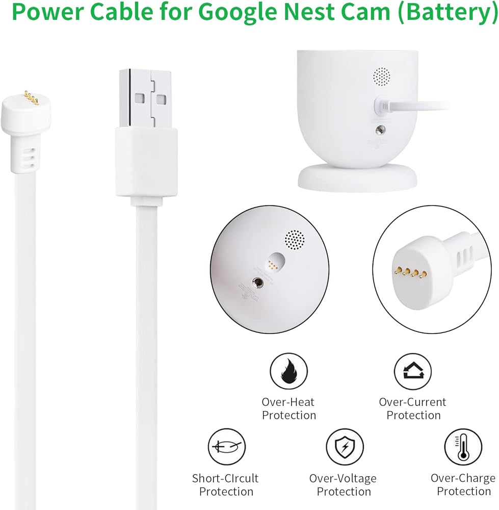 2 حزمة كابل طاقة ومحول طاقة بطول 13 قدم/4 متر متوافق مع Google Nest Cam في الهواء الطلق أو في الداخل، بطارية، كابل خارجي مسطح مقاوم للطقس يشحن باستمرار كاميرا Nest الخاصة بك (البطارية) - أبيض
