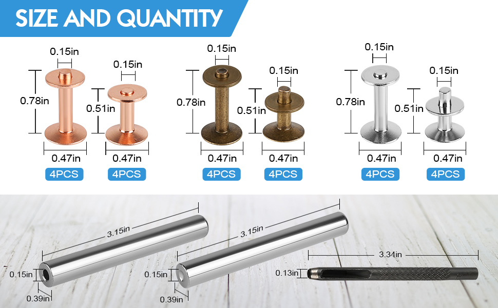 حجم ولون المسامير النحاسية والنتوءات: في هذه المجموعة، ستحصل على 24 مجموعة بمقاسين و3 ألوان من مجموعة متنوعة من المسامير النحاسية والنتوءات. اللون: فضي، نحاسي، برونزي. مقاسان: 12*4*12 مم، 12*4*19 مم، لذا فإن الأدوات المختلفة بكمية كافية، سهلة لتلبية احتياجاتك بنفسك. 1 مجموعة أداة إعداد ثقب الثقب 3.5 مم.