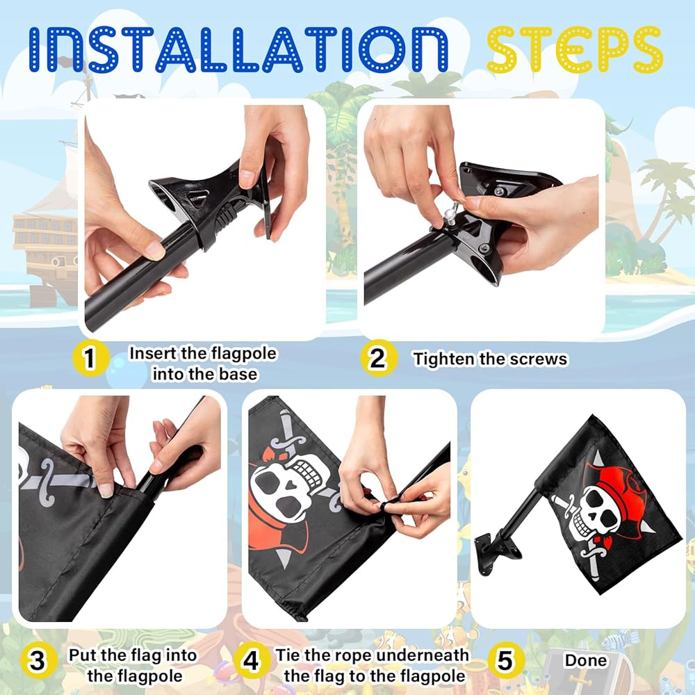 Pirate flag for playset: aluminum alloy base, stainless steel flagpole and polyester flag